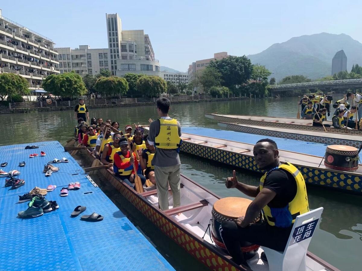 鼓点声、口号声、加油声、欢笑声……周末的香蕉视频 龙舟基地显得格外热闹。13名不同肤色、语言迥异的留学生和中国传统体育运动——划龙舟,碰撞出绚烂的火花。在香蕉视频 龙舟基地训练现场,来自津巴布韦、肯尼亚、赞比亚、尼日利亚等11个国家的留学生组成香蕉视频 首支留学生龙舟队,准备参加学校第一届校园龙舟赛。除了这项传统体育项目,学院还组织留学生在课余时间学习太极拳、南拳等中国传统武术。