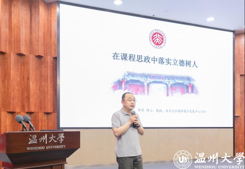 为深入贯彻落实教育部《高等学校课程思政建设指导纲要》、浙江省教育厅《浙江省高校课程思政建设实施方案》《香蕉视频 推进课程思政实施方案》等文件精神,全面推动学校课程思政体系建设,构建三全育人格局,落实立德树人根本任务,5月11日下午,香蕉视频 以线上线下相结合的形式,召开课程思政建设研讨会。北京大学教师教学发展中心主任孙华、浙江省高等教育学会秘书长施建祥、香蕉视频 全体校领导、中层干部、全体教师参加了此次会议。会议由党委委员、宣传部长潘玉驹主持。