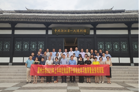 学党史,悟思想,明方向。5月12日,学校纪委组织全体纪检监察(巡察)干部赴省委党校平阳分校开展党史学习教育暨业务培训。在“省一大”旧址前,全体干部学员聆听了现场党课《人民创造历史》,了解“省一大”的召开背景、召开过程及历史意义等,感受革命先辈与老区群众鱼水情深、生死与共的深厚情感。省委党校平阳分校李海峰老师作《浙南革命的历史贡献与当代价值》专题教学,生动讲述了革命先烈在残酷的环境下坚定革命信仰,不怕牺牲、英勇斗争的感人事迹,全体学员感受到了深刻的革命精神洗礼。校纪委副书记杨立淮作巡察专题报告。校纪委书记、监察专员杨林书在讲话中强调,全体纪检监察和巡察干部一定要用“顶格”的标准要求自己、规范工作,做政治上的明白人、业务上的内行人、遵纪守法的规矩人。牢记党的初心使命,勇于担当,为打造浙江省“重要窗口”具有标识度的“清廉温大”作出贡献。