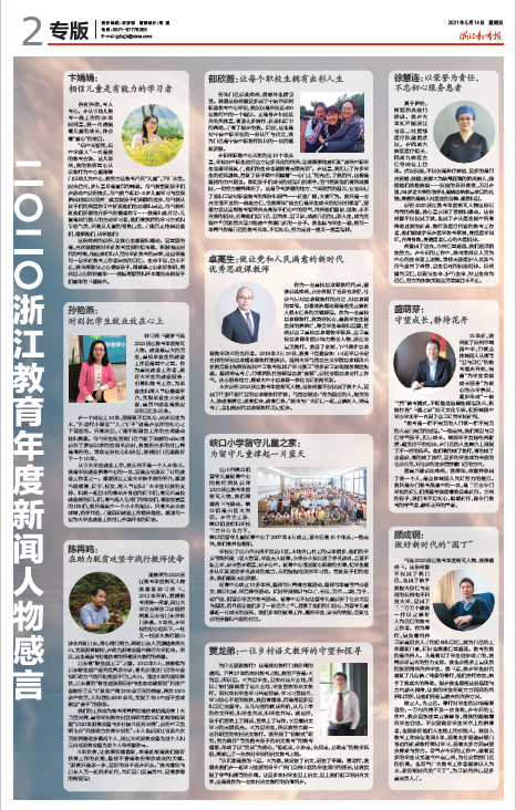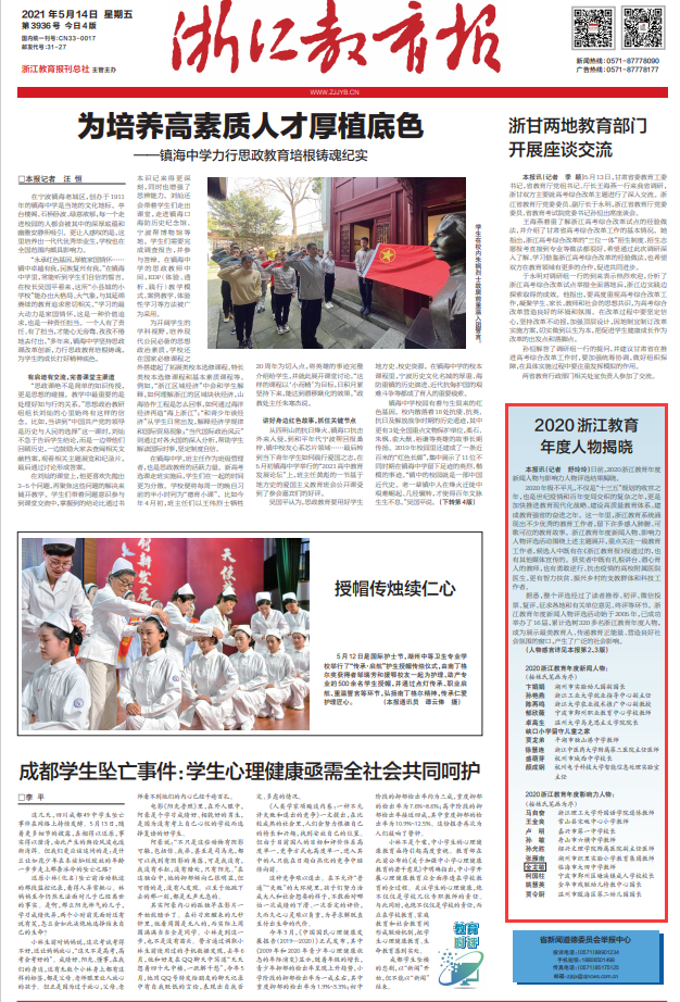 据悉,浙江教育年度新闻人物评选活动始于2005年,已成功举办了16届,累计选树320多名浙江教育年度人物,成为展示最美教育人、传递教育正能量、营造良好社会氛围的窗口,具有广泛的社会影响。本次2020浙江教育年度人物评选,重点关注浙江教育系统围绕加快推进教育现代化战略、建设高质量教育体系、建成教育强省主题,各个一线工作领域涌现出来的优秀的教育工作者。卓高生教授作为思政课教师代表获此殊荣,充分体现了社会各界对于香蕉视频 思政课教育教学成果的充分肯定,彰显了香蕉视频 思政课改革与创新在全省教育系统的影响力。