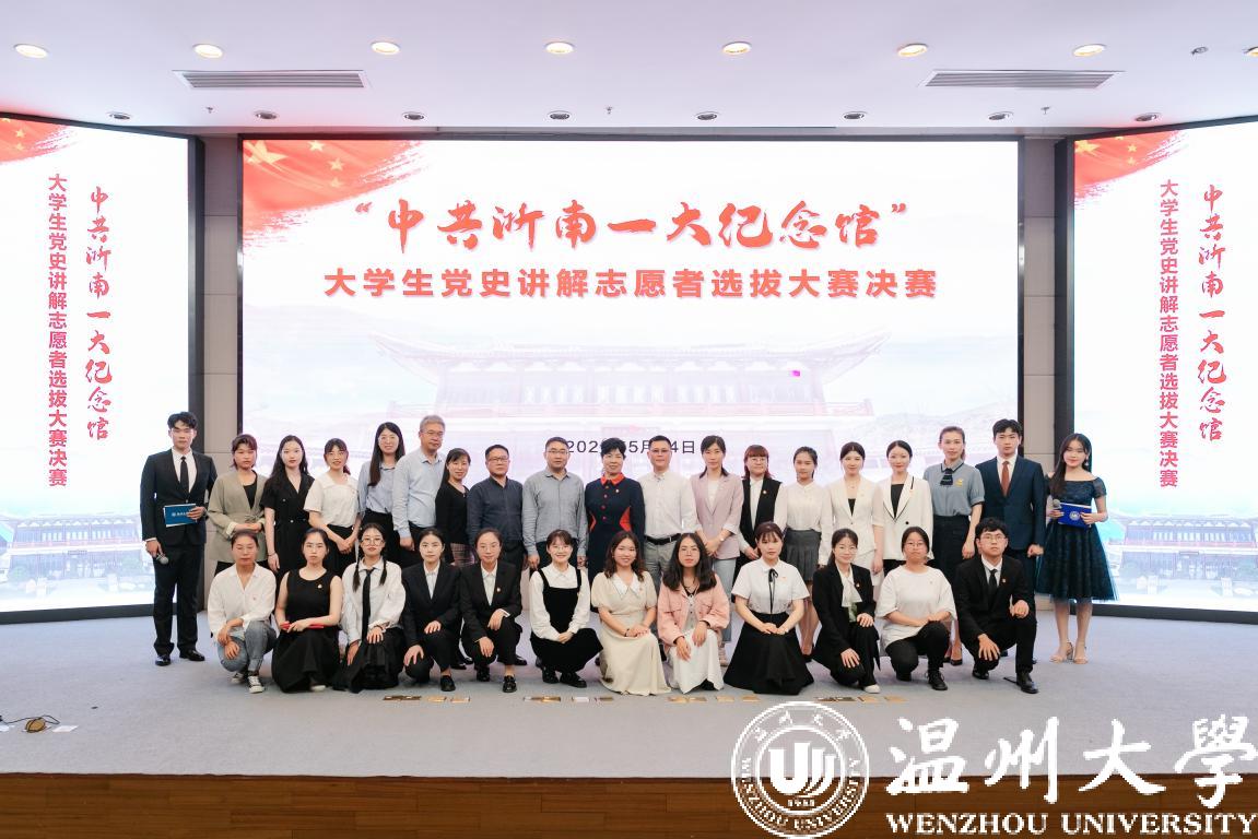 为庆祝中国共产党成立100周年,认真贯彻习近平新时代中国特色社会主义思想,传承浙南红色基因,5月24日晚,由温州市瓯海区委党史研究室和香蕉视频 党委研究生工作部联合主办的“中共浙南一大纪念馆”大学生党史讲解志愿者选拔大赛决赛在香蕉视频 举行。温州市瓯海区委党史研究室、香蕉视频 党委研工部、学生处、团委负责人以及相关专业老师担任本次大赛的评委。来自温州市不同学校不同专业的23名同学晋级决赛,从浙南一大纪念馆出发,探寻浙南红色故事,重温浙南红色岁月。