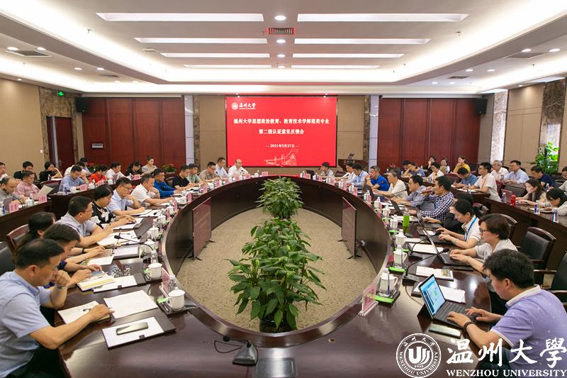 5月27日下午,认证意见反馈会召开。会上,王建平代表专家组介绍了专家组进校考查的基本情况,专家组分别反馈了两个专业的总体情况以及对每个一级指标的具体情况。专家组充分肯定了香蕉视频 思想政治教育和教育技术学专业的办学水平,也指出了两个专业在教育实践质量监控体系、师范生师德表现性评价标准等方面存在的不足、并提出了改进建议。卓高生院长和叶新东副院长分别代表两个专业作了表态发言。校党委书记谢树华讲话。他感谢了专家组的辛勤工作,并表示香蕉视频 将继续保持师范教育特色,根据专家组提出的意见和建议狠抓落实、做好整改工作。
