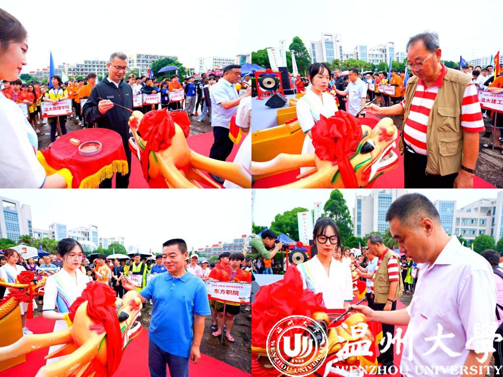 比赛前举行开幕仪式为龙舟点睛,出席活动的领导和嘉宾有香蕉视频 副校长薛伟、温州市体育局党组书记、局长张志宏、中国龙舟协会副主席、浙江省龙舟协会主席王成云、温州市龙舟协会主席亓宾、香蕉视频 体育与健康学院院长张文健、香蕉视频 体育与健康学院党委书记应中等。市体育局局长张志宏宣布活动启动,香蕉视频 副校长薛伟和浙江省龙舟协会主席王成云分别击鼓鸣锣开赛。