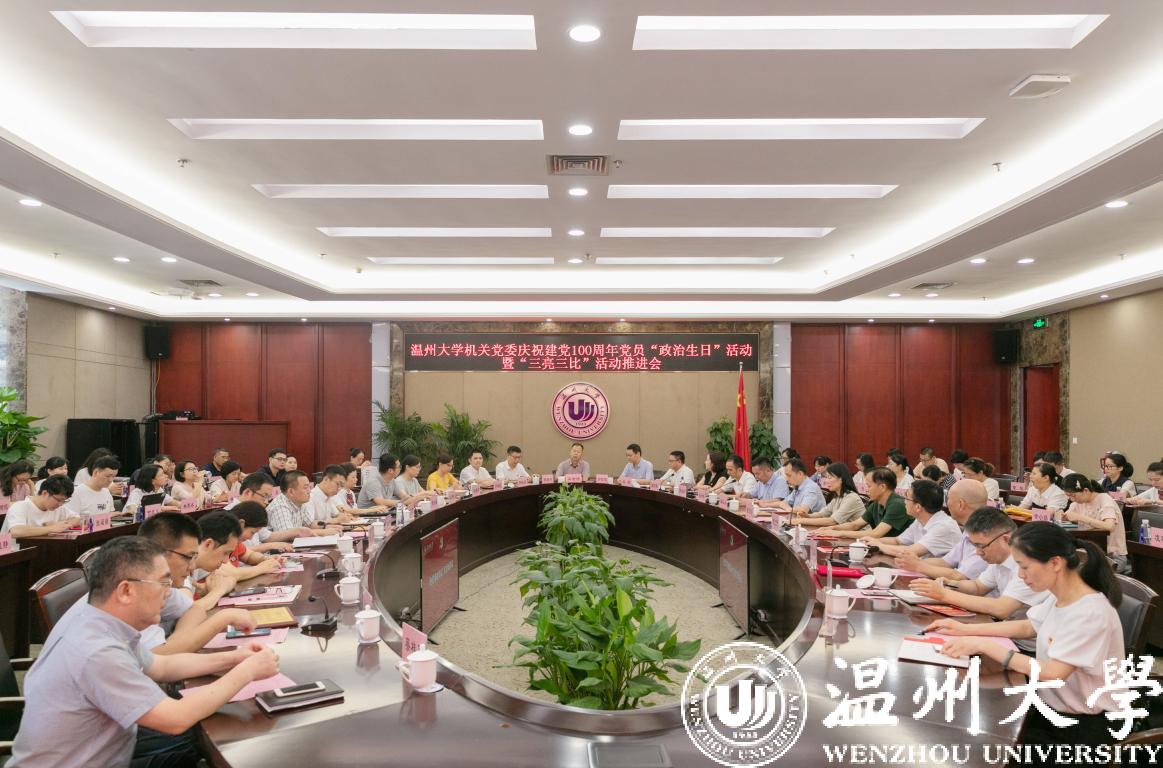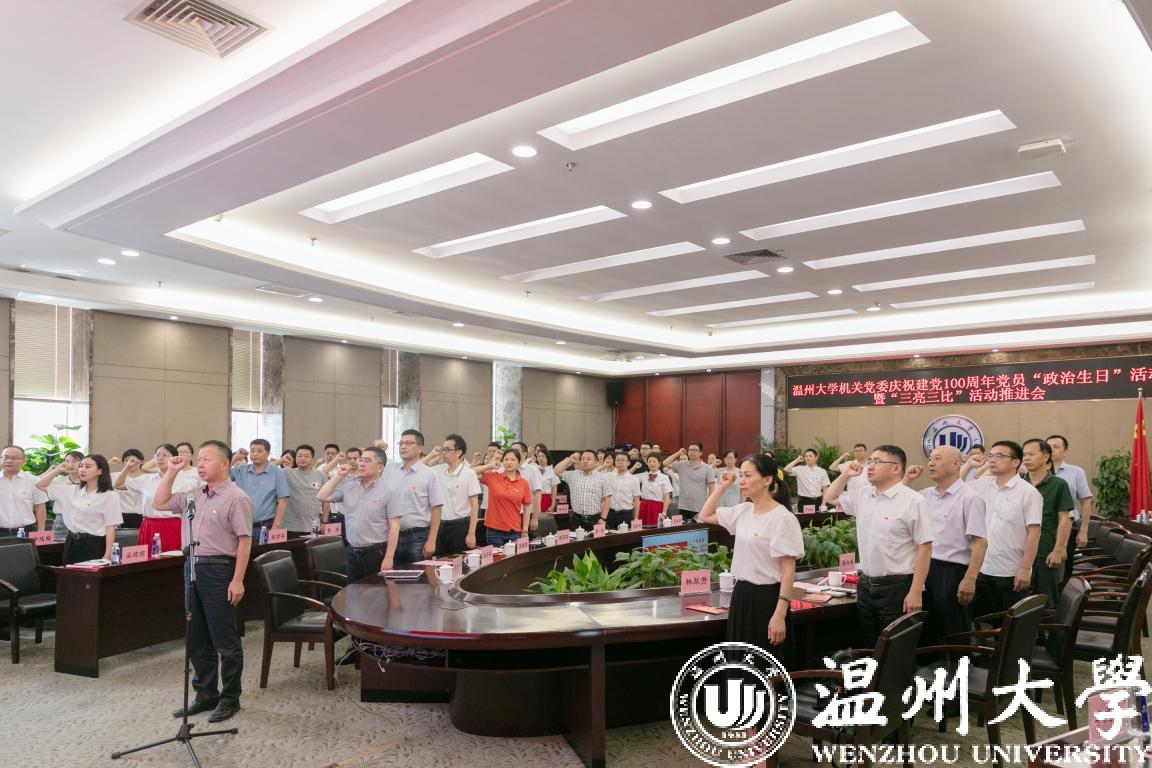 6月28日下午,香蕉视频 机关党委举行庆祝建党100周年党员“政治生日”活动暨“三亮三比”活动推进会。校党委副书记吴金法,党委委员、组织部部长郑信军出席活动。