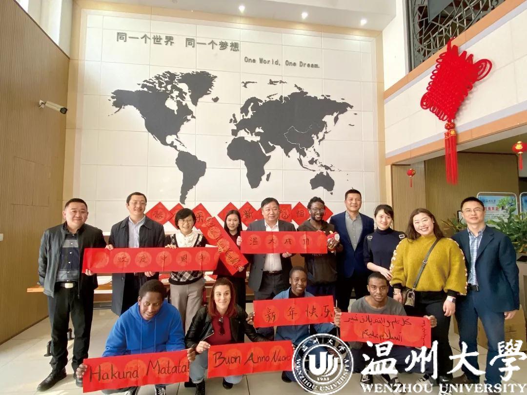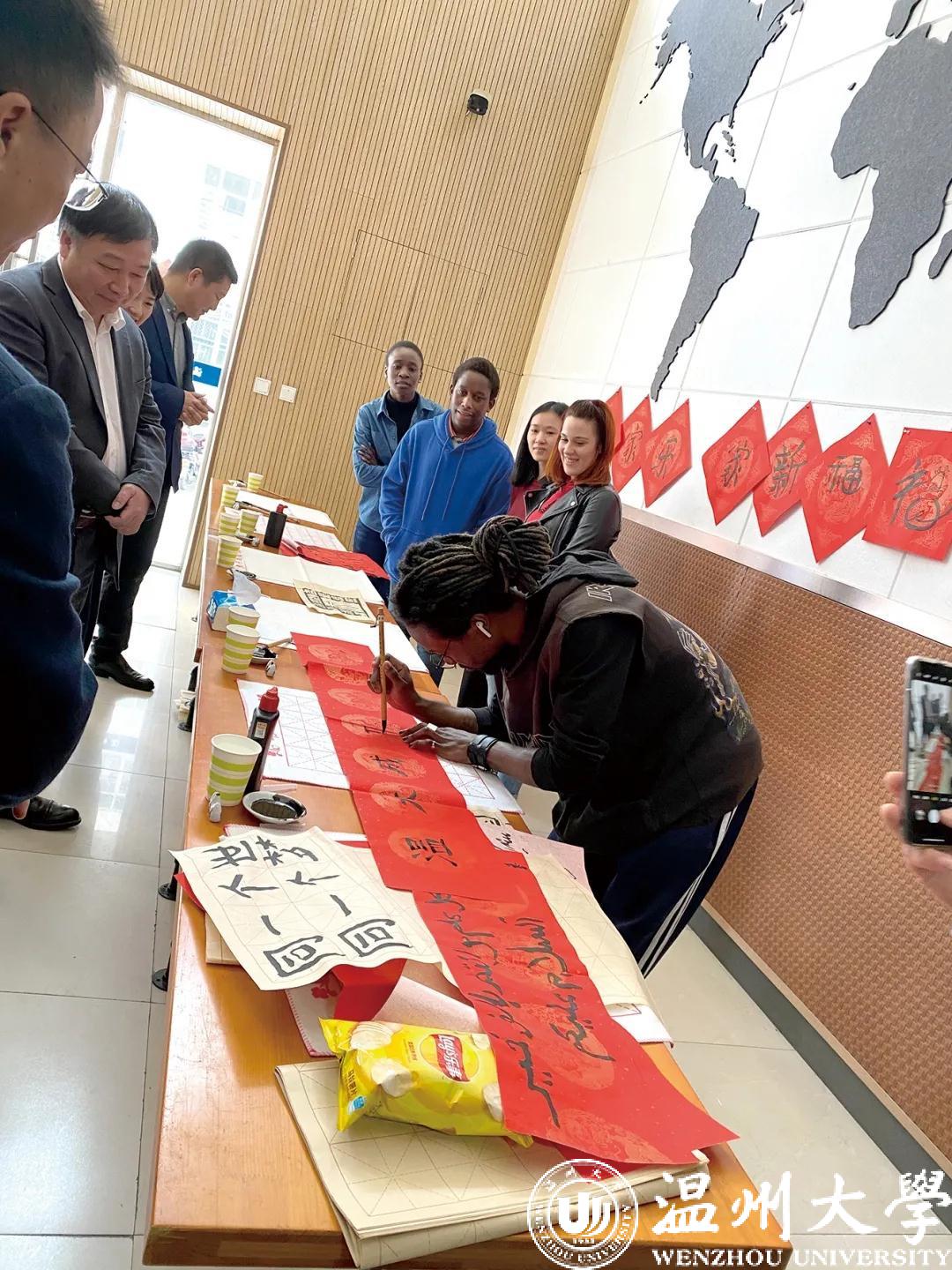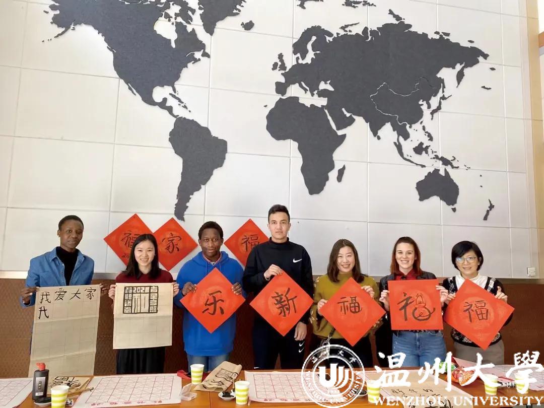 农历牛年前夕,“写‘福’字、贴春联、挂灯笼”,迎接传统节日的喜庆气氛弥漫在香蕉视频 国际教育学院,来自越南的2020级汉硕留学生代表陈氏玉映与尼日利亚、津巴布韦、土库曼斯坦、意大利等国的留学生,跟着温大的老师们一同体验中国年味、感知中国文化,感受浓浓的“温”情年味。