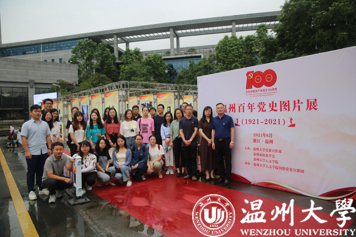 潘玉驹宣布温州百年党史图片展开幕,并同师生一起参观了图片展。他指出,举办图片展是深入推进党史学习教育,积极营造学党史、悟思想浓厚氛围的重要举措,让百年党史走进校园,贴近广大师生。