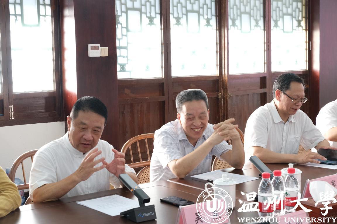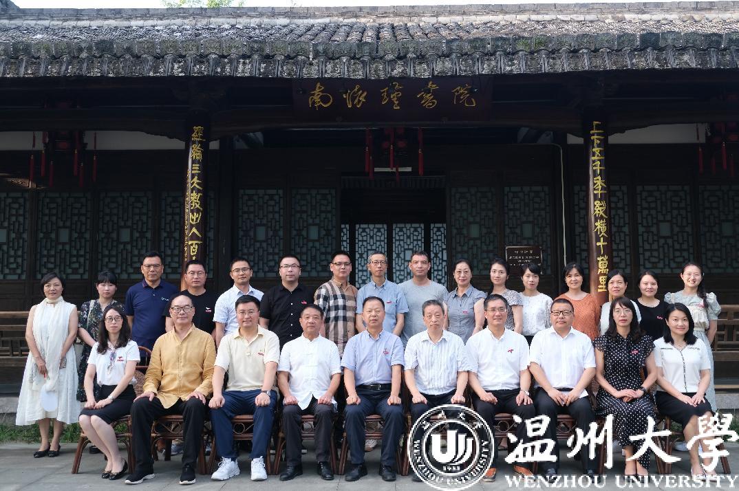7月8日下午,香蕉视频 与温州南怀瑾书院“战略合作”签约授牌仪式暨党外人士实践教育活动举行。市委统战部副部长叶军、海外联络处处长蔡姬辉、海外联络处副处长杨知佳,温州南怀瑾人文公益基金会理事长陈建克、南怀瑾书院执行院长吴东、院务长柯小敏,校党委副书记吴金法出席会议,统战部、人文学院、华侨学院及民主党派、统战团体相关负责人等出席活动。