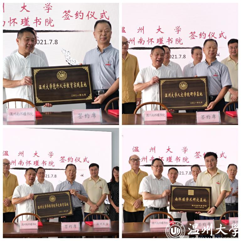 会上,统战部负责人代表香蕉视频 与温州南怀瑾书院签订战略合作协议,形成长效合作机制。授牌成立香蕉视频 党外人士教育基地、人文学院研学基地,华侨学院华文教育基地和南怀瑾学术研究基地。
