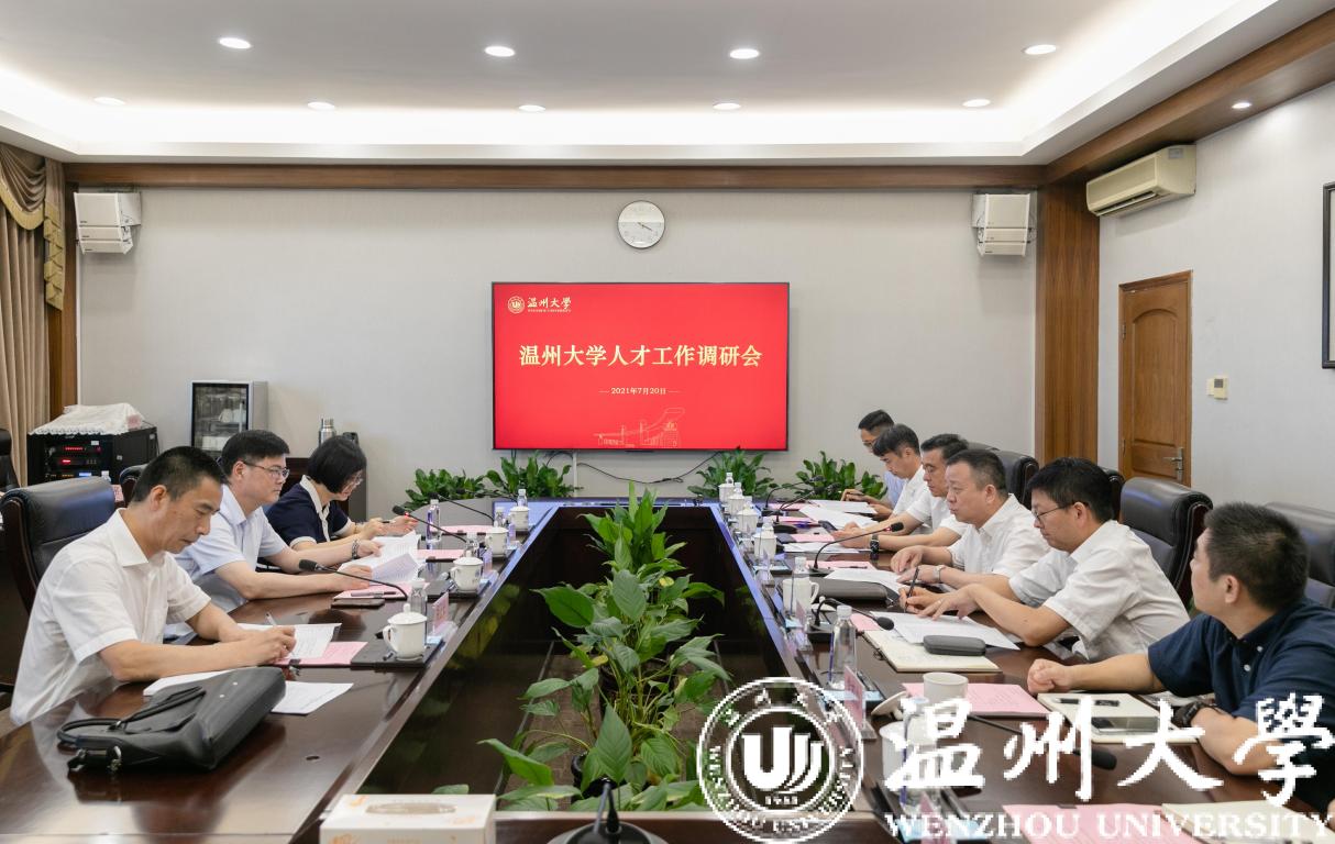 7月20日下午,温州市人民政府副市长陈应许莅临香蕉视频 调研指导人才工作。市人力社保局副局长胡正长、市委组织部人才工作处副处长王昕等陪同调研。校党委书记谢树华、党委副书记庄兴忠、副校长薛伟,以及党校办、组织部、人事处、招就处等部门负责人参加调研汇报会。