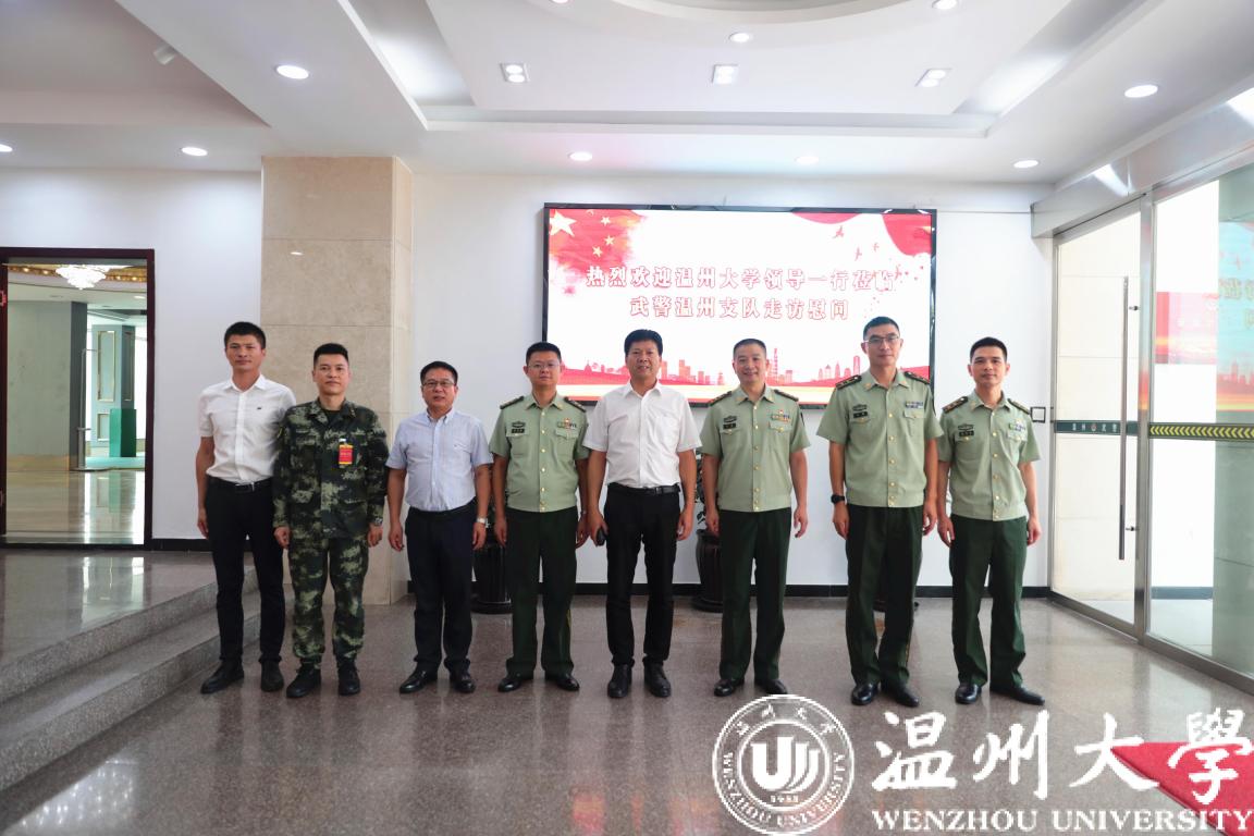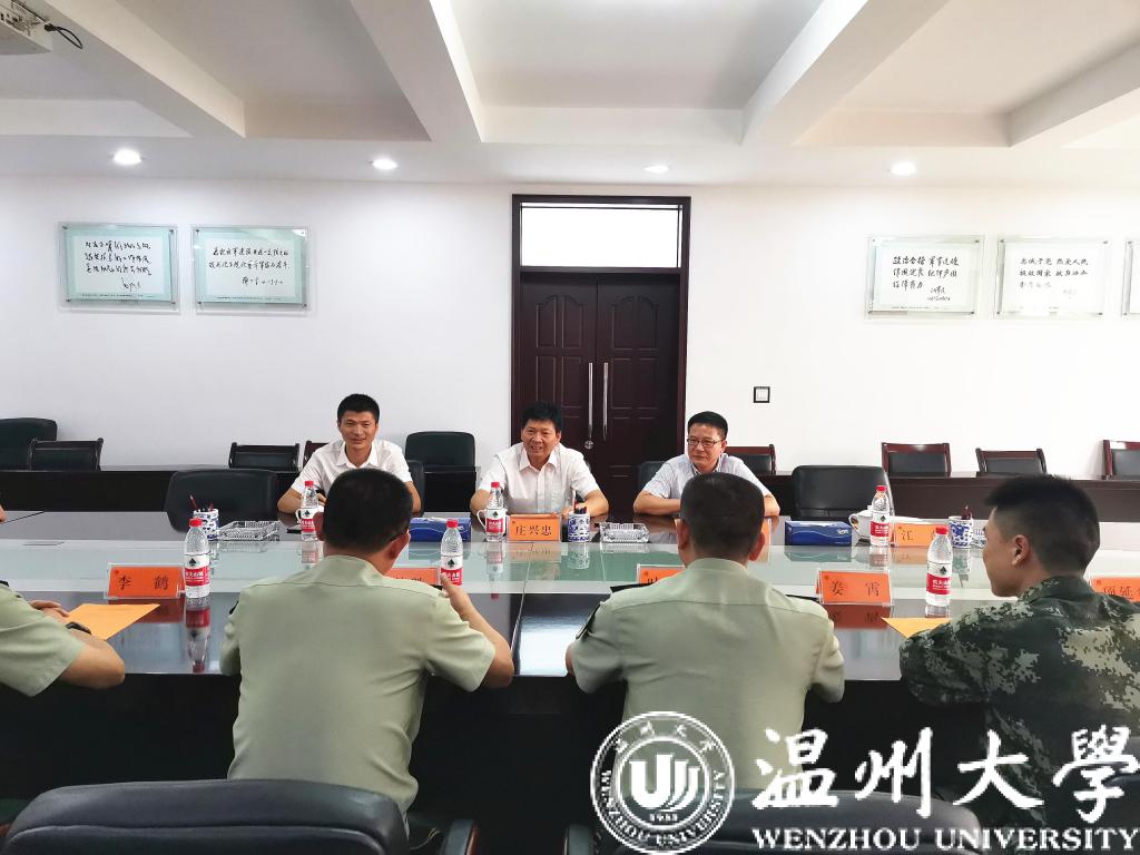 在中国人民解放军建军94周年来临之际,为扎实做好“八一”期间双拥工作,进一步密切军、校关系,7月27日上午,香蕉视频 党委副书记庄兴忠等一行走访武警温州支队,代表香蕉视频 向官兵们致以节日慰问。庄兴忠一行受到了武警支队的热烈欢迎,并与支队长叶峰、政委伍德胜等领导进行座谈交流。
