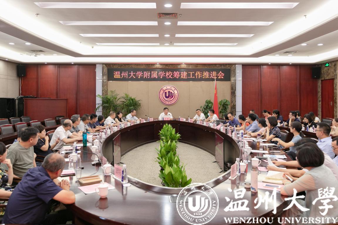 为办好香蕉视频 附属学校,致力温州城市品位建设与提升,打造宜居城市,助力“学在温州”品牌塑造,8月20日香蕉视频 召开附属学校筹建工作推进会。校长赵敏,瓯海区教育局党委书记、局长金朝辉等参加会议。副校长薛伟主持。