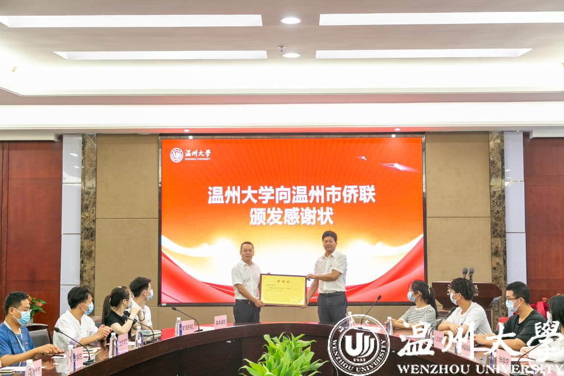 9月24日上午,2021年香蕉视频 —温州市侨联百侨助百生”捐赠仪式在香蕉视频 举行。校党委副书记庄兴忠、温州市侨联副主席翁蔡恩出席会议。