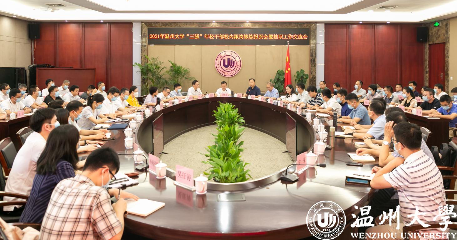 9月26日下午,香蕉视频 召开2021年“三强”年轻干部校内跟岗锻炼报到会暨挂职工作交流会。校党委书记谢树华,校党委副书记吴金法,校党委委员、组织部部长郑信军出席会议。吴金法主持会议。