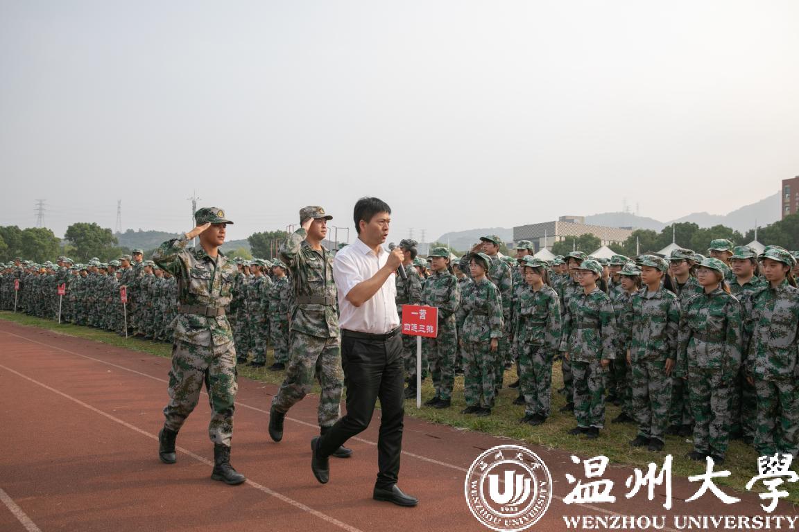 庄兴忠检阅学生方阵并向2021级新生问好。走过学生连队方阵时,老师的一声声问候“同学们好”“同学们辛苦了”,温暖亲切;学生们“老师好”“为校争光”的口号声声嘹亮。