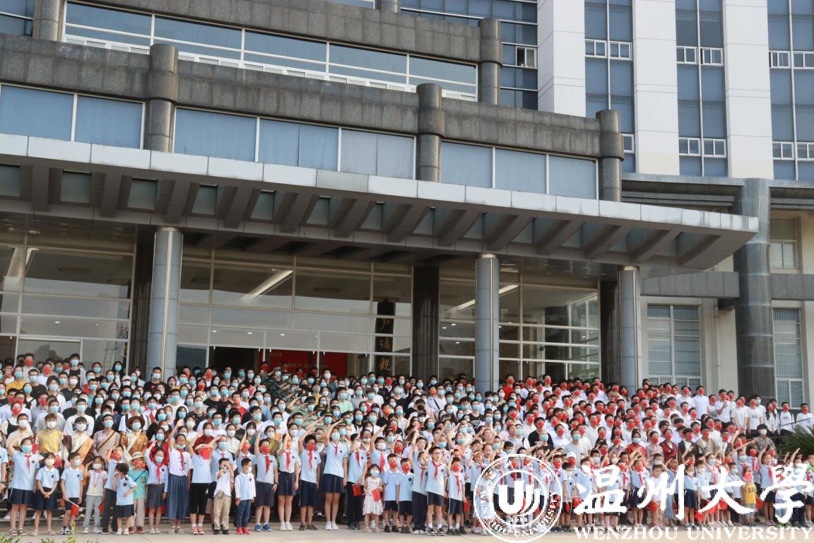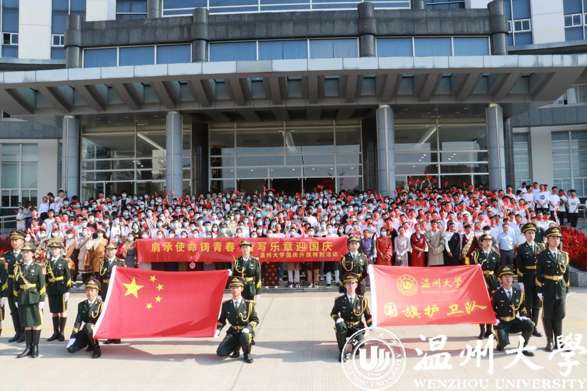 伴随着雄壮的《义勇军进行曲》响彻温大校园,鲜艳的五星红旗冉冉升起,现场师生向国旗致以庄严的注目礼,深情表达对伟大祖国的热爱。