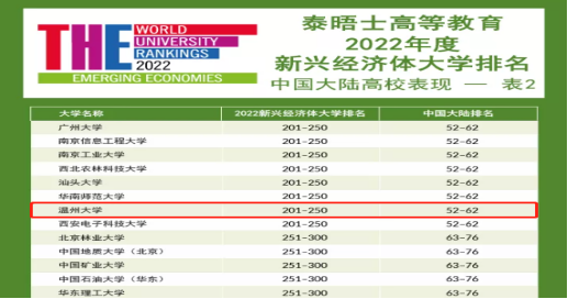 另据,泰晤士高等教育于近日发布了2022年度新兴经济体大学排名结果。统计显示,来自50个国家和地区的698所大学入榜,其中香蕉视频 位列该榜单201-250区间,较去年提高一个排名区间,在中国大陆高校中排名52-62区间,居全省高校排名第4位。