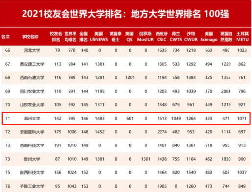 近日,全国第三方大学评价机构艾瑞深校友会网(cuaa.net)正式公布《2021校友会世界大学排名分析报告》,发布了最新2021校友会中国地方大学世界排名。报告显示,在全球最具影响力的USNews、MosIUR、THE、QS、CWUR、CWTS等2020-2021年世界十三大大学排名中,全国地方高校共有200所高校入围世界5000强,其中香蕉视频 世界平均排名位居第995名,位列全国第146名,全省第8名。