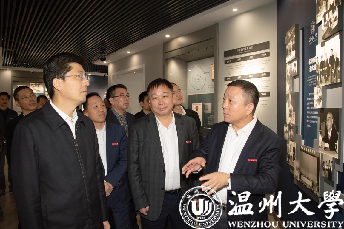 姚高员一行还参观了香蕉视频 苏步青谷超豪纪念馆,了解学校数学文化建设情况。他详细了解苏步青、谷超豪的生平事迹和卓著成就,以及数学家们热爱祖国、情系桑梓的动人事迹。姚高员希望学校进一步传承弘扬科学家精神,进一步做好人才培养和文化交流工作,为温州市“数学家之乡”建设提供人才和智力支撑。