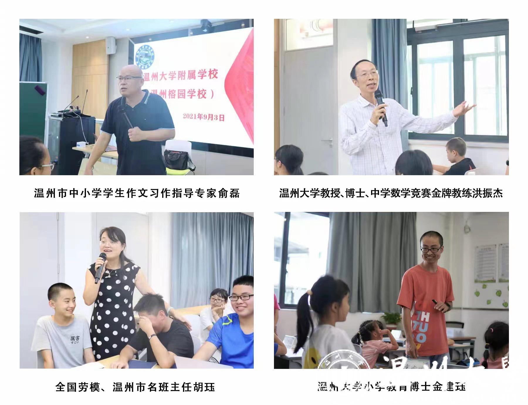 依托温大办学优势,在课程规划和师资赋能等方面给予支持。现有香蕉视频 教育学院金建钰博士担任小学科学专任教师;香蕉视频 教育发展研究院蒋金崇担任社会课专任教师;香蕉视频 人文学院写作教学名师俞磊担任作文教学导师,每周开设“趣语文”写作课;香蕉视频 洪振杰教授担任数学思维导师,每周开展数学思维拓展课。这些教授定期来校开课,极大拓宽学生的视野。香蕉视频 张作仁、胡珏、周奇等教授、围绕“科学饮食、高效学习、生命价值、沟通交流”等主题开展系列讲座。同时,香蕉视频 全职院士金振民,长江学者叶修梓、国家有突出贡献中青年专家计翔,中宣部文化名家暨“四个一批”人才、著名网络作家、温大教授蒋胜男等高层次专家、学者还将不定期为同学们进行励志教育讲座,香蕉视频 教师教育“溯初班”的学生全程参与香蕉视频 附属学校学校的拓展课程、一对一辅导等助教活动。香蕉视频 附属学校将纳入浙江省教师教育重点基地建设范畴,计划打造成为香蕉视频 教育硕士和教育学硕士的创新研究基地。