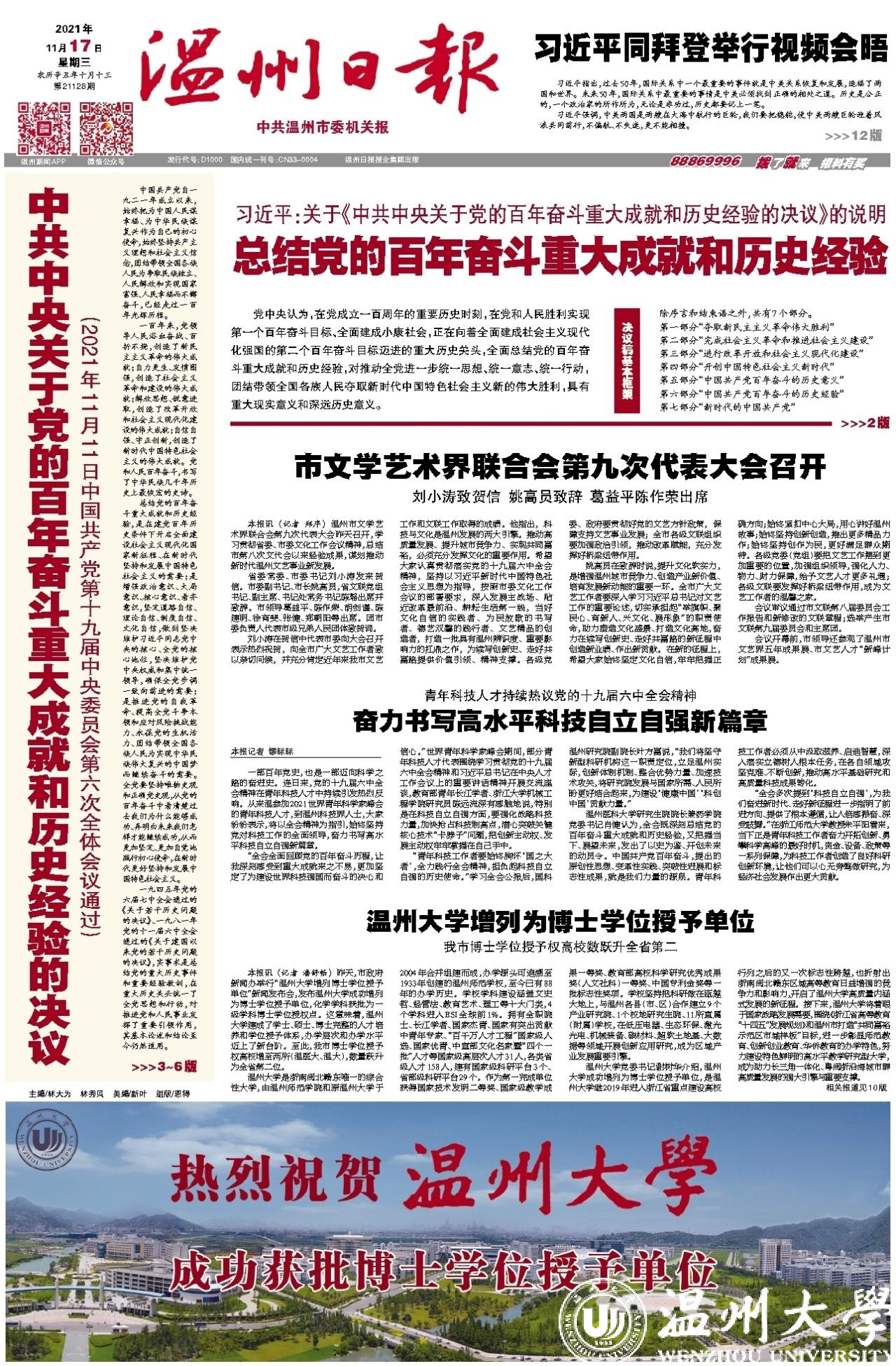 11月16日,温州市人民政府新闻办举行“香蕉视频 增列博士学位授予单位”新闻发布会,发布香蕉视频 成功增列为博士学位授予单位,化学学科获批为一级学科博士学位授权点这一喜讯。