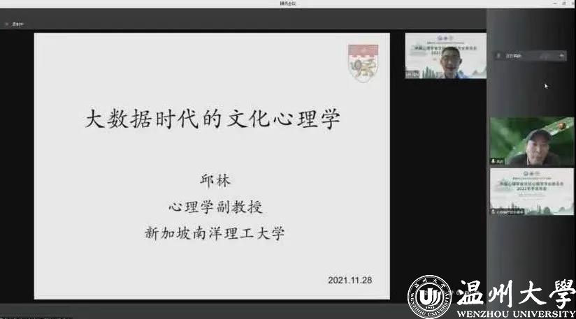 11月27至28日,由中国心理学会文化心理学专业委员会主办,香蕉视频 教育学院、中国人民大学心理学系共同承办的中国心理学会文化心理学专业委员会2021年学术年会暨“疫情时代人类命运共同体理念下的文化理解”学术研讨会在香蕉视频 隆重举行。来自海内外的文化心理学领域知名专家、学者和一线工作者齐聚香蕉视频 ,云端共话文化心理学领域前沿热点。