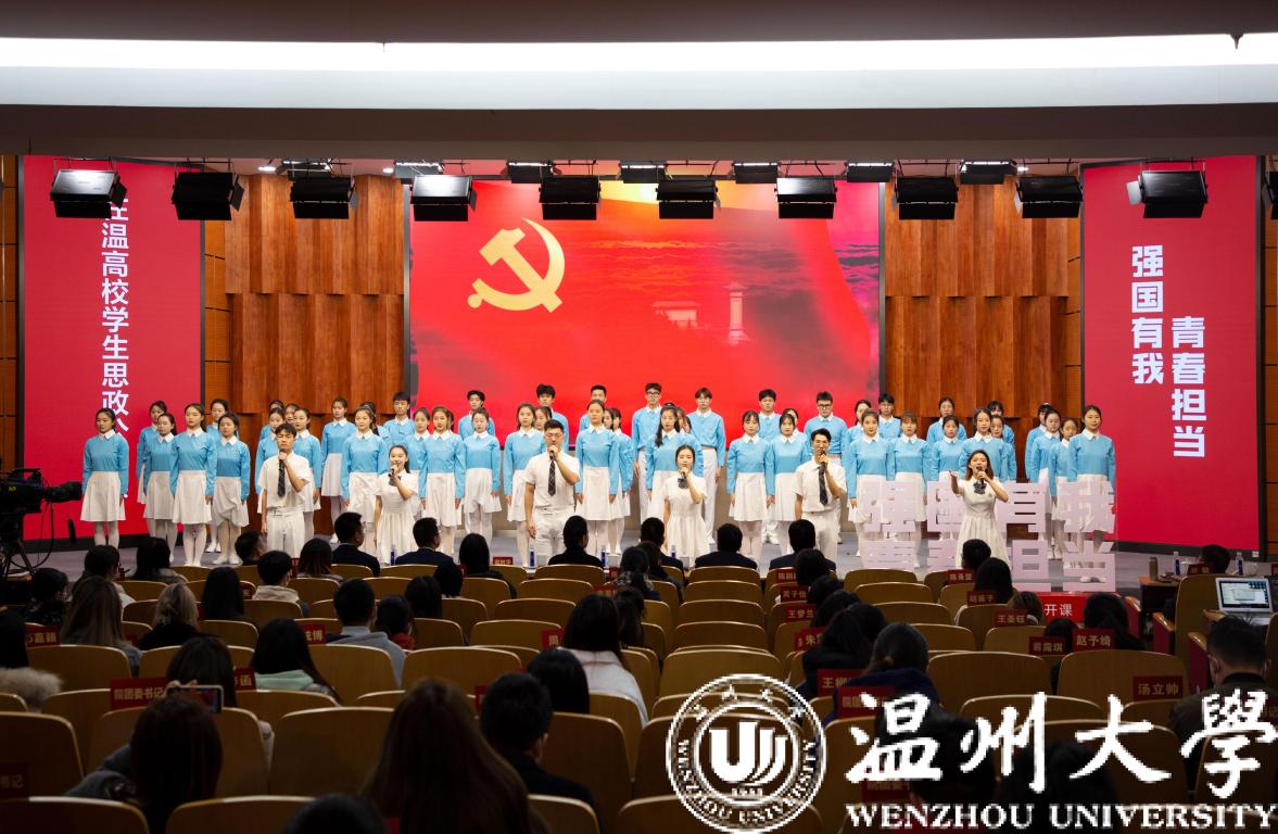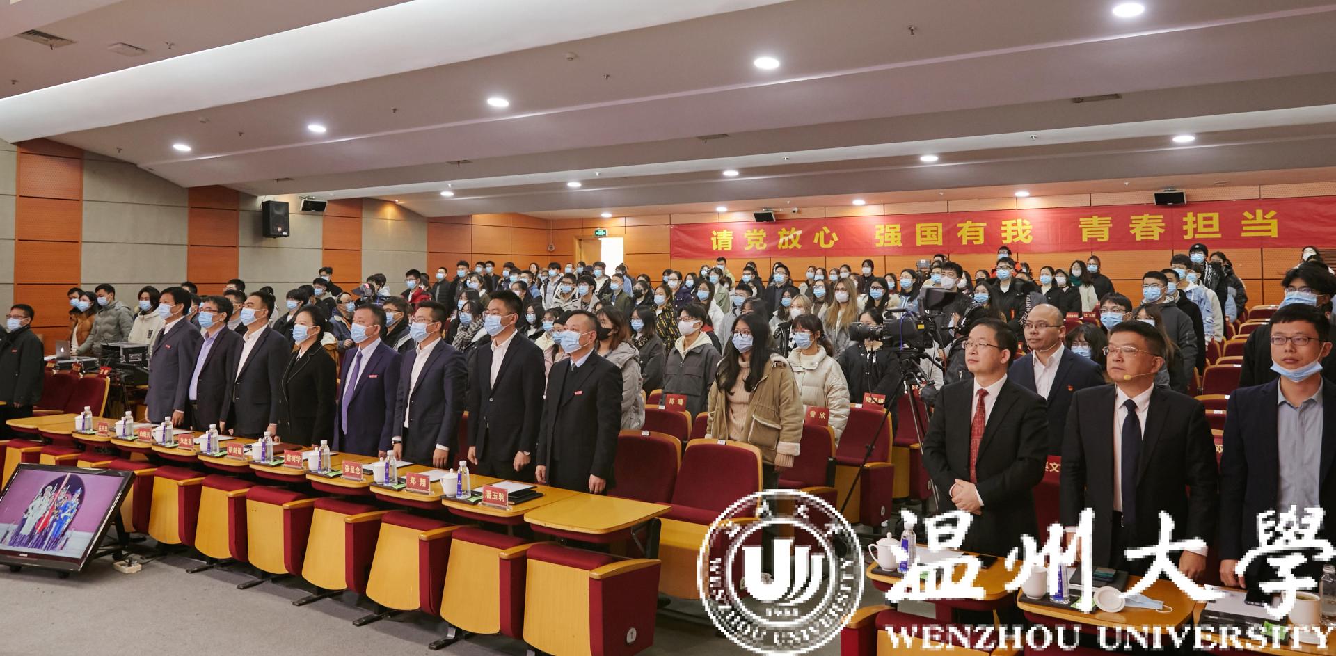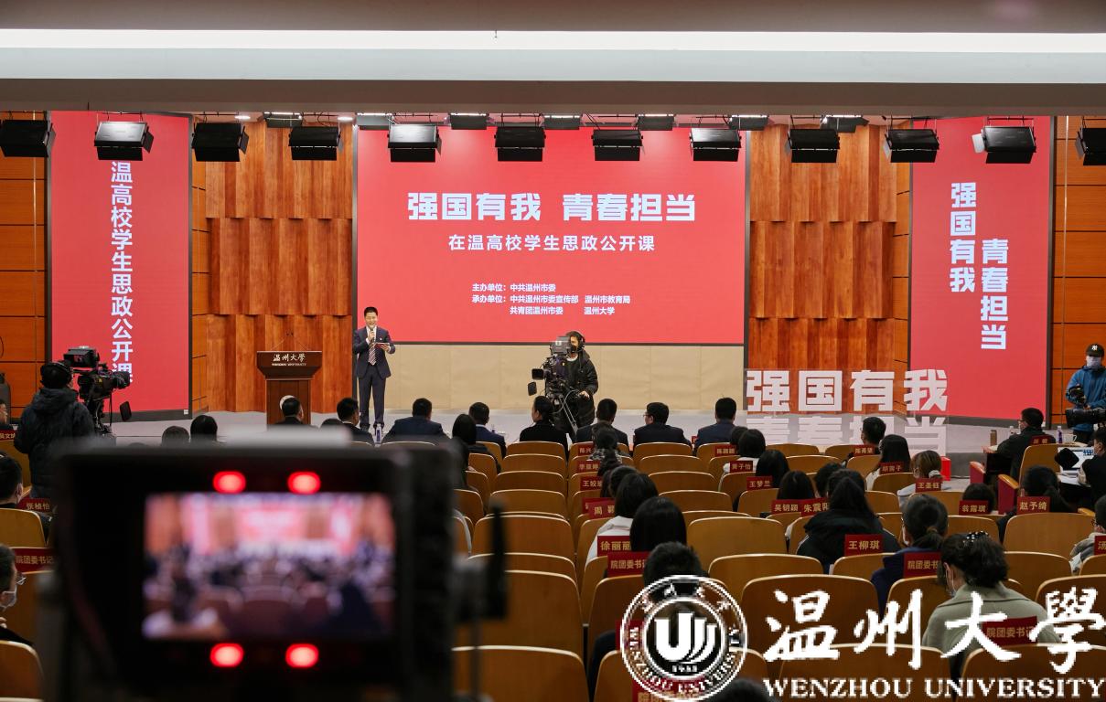 为落实立德树人根本任务,扎实推进学生思想政治教育工作,12月2日上午由中共温州市委主办,市委宣传部、市教育局、团市委和香蕉视频 等在温高校承办的“强国有我 青春担当”在温高校学生思政公开课在香蕉视频 举行。市委常委、宣传部长胡剑谨,校党委书记谢树华,市委宣传部常务副部长朱启来,团市委书记张呈念,市教育局党委副书记白炳兴,团市委副书记郑翔,校党委副书记庄兴忠,校党委宣传部长潘玉驹以及香蕉视频 师生代表等160余人现场聆听公开课。温州电视台主持人翁逻沿主持公开课。