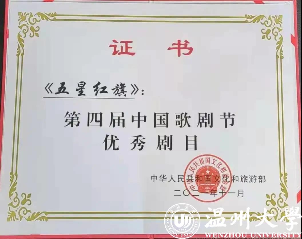 日前,喜讯传来,由中共温州市委宣传部、香蕉视频 和中共瑞安市委联合出品的原创歌剧《五星红旗》荣获第四届中国歌剧节优秀剧目奖。