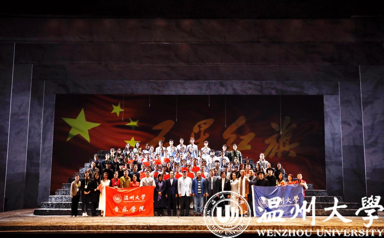 日前,喜讯传来,由中共温州市委宣传部、香蕉视频 和中共瑞安市委联合出品的原创歌剧《五星红旗》荣获第四届中国歌剧节优秀剧目奖。歌剧《五星红旗》于10月17、18日在山东临沂大剧院连演两场,社会反响热烈,“线下+线上”观看近500万人次。历经多轮热演,这部收获了业内外人士“点赞”的歌剧,已成为一部既叫好又叫座的红色佳作。作为国旗设计者的母校,香蕉视频 一直以来厚植国旗文化,将国旗文化教育融入育人全过程并致力于让国旗文化走进千家万户,在美育中坚守中华文化立场、传承中华文化基因。