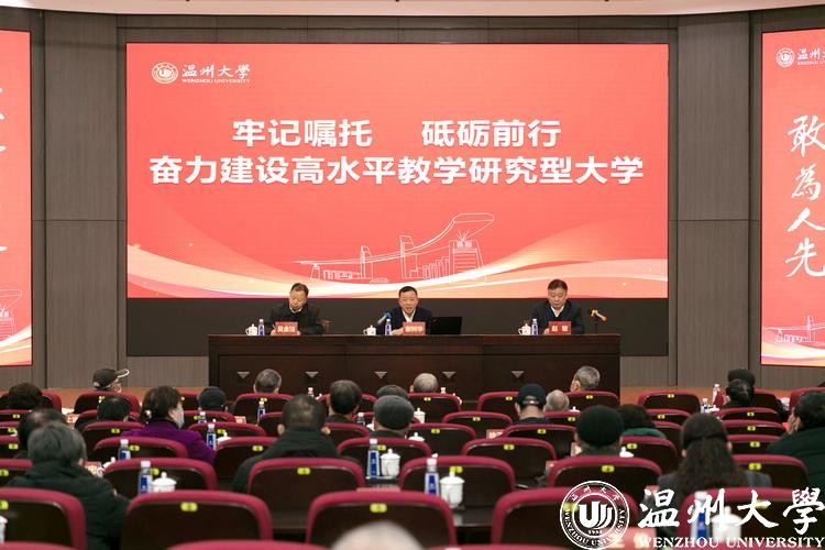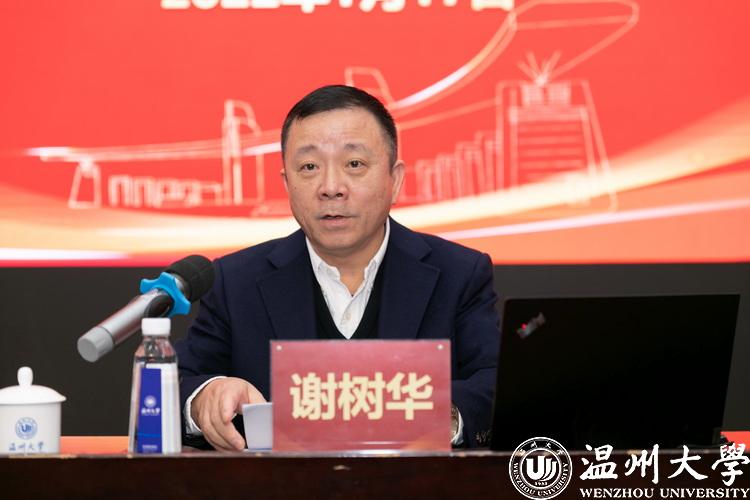 谢树华作校情通报。他围绕办学定位、办学优势、三大目标、三项改革、办学治校高分报表介绍学校2021年建设发展情况。他指出,2021年,学校党委坚持以习近平新时代中国特色社会主义思想为指导,牢记习近平总书记“要高度重视教育和人才工作,特别要办好香蕉视频 等高等院校”的殷殷嘱托,带领全体温大人,勠力同心、砥砺前行,实现了一系列重大办学新突破,取得了办学治校的丰硕成果。进入“十四五”,学校将聚焦更讲政治,争做中国特色社会主义大学的模范生;更高水平,跻身全国地方高校第一方阵;更具特色,创建以侨为特色“省部共建”高校;更有作为,全方位服务温州经济社会高质量发展等四条发展主线。