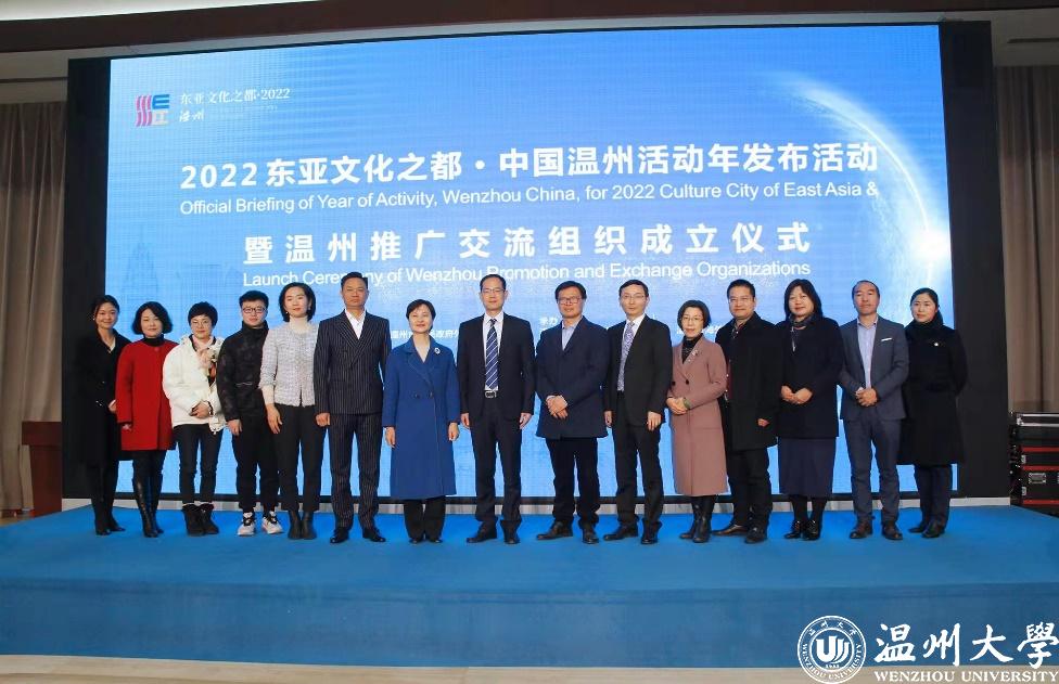 1月26日上午,“2022东亚文化之都·中国温州活动年”发布活动暨温州推广交流组织成立仪式在温州市海外传播中心举行,浙江省文化和旅游厅副厅长、党组成员、一级巡视员许澎,温州市人民政府副市长娄绍光出席,香蕉视频 外国语学院负责人等参加活动。温州市人民政府副秘书长项光夫主持。