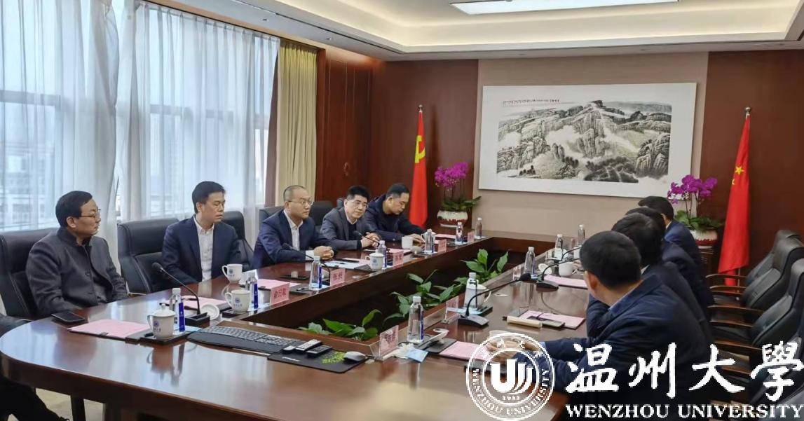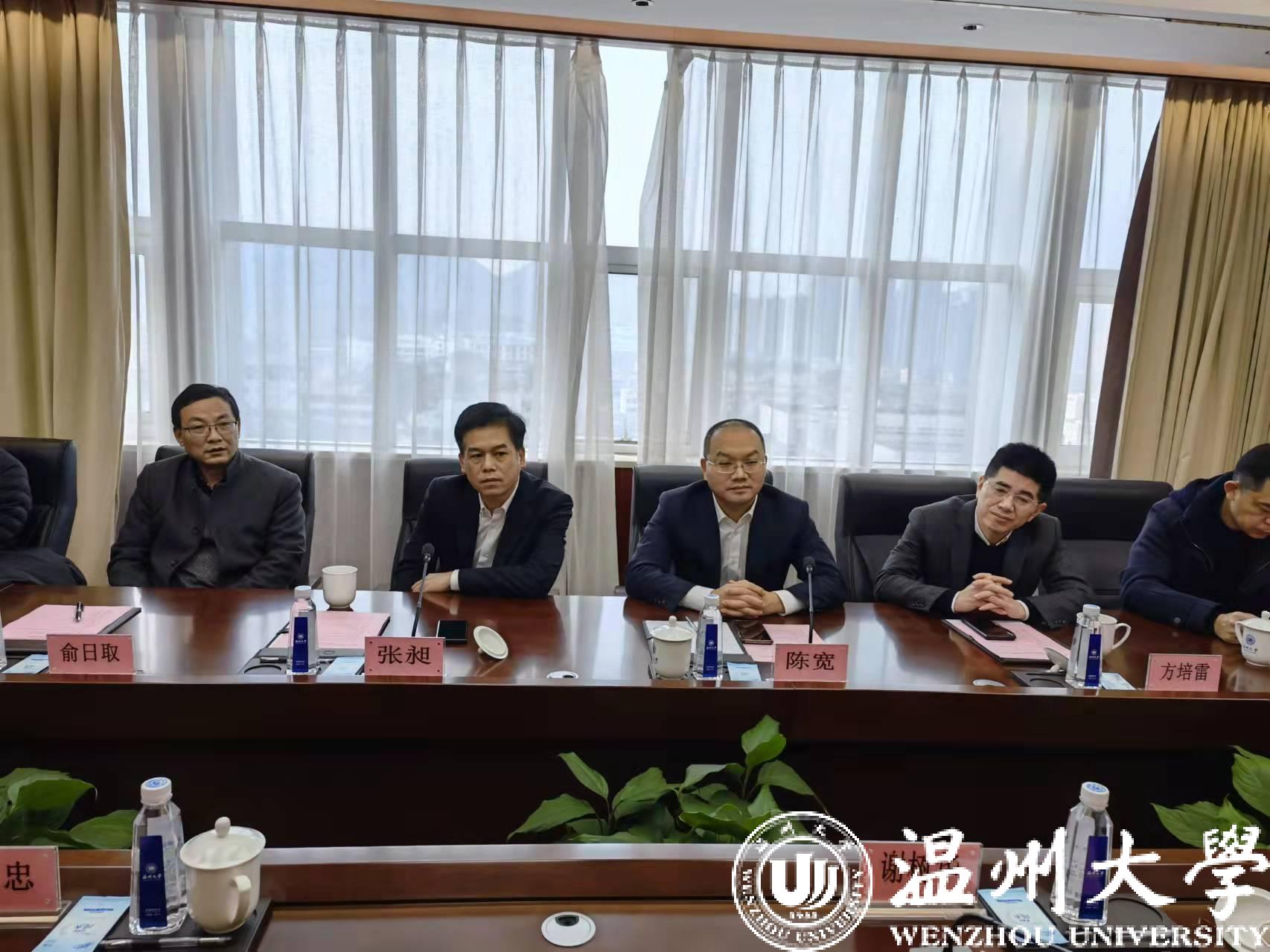2月27日上午,温州市副市长陈宽一行莅临香蕉视频 调研指导,市政府副秘书长方培雷、瓯海区副区长张昶等陪同调研。校党委书记谢树华、党委副书记庄兴忠、副校长王舜等出席调研座谈会。