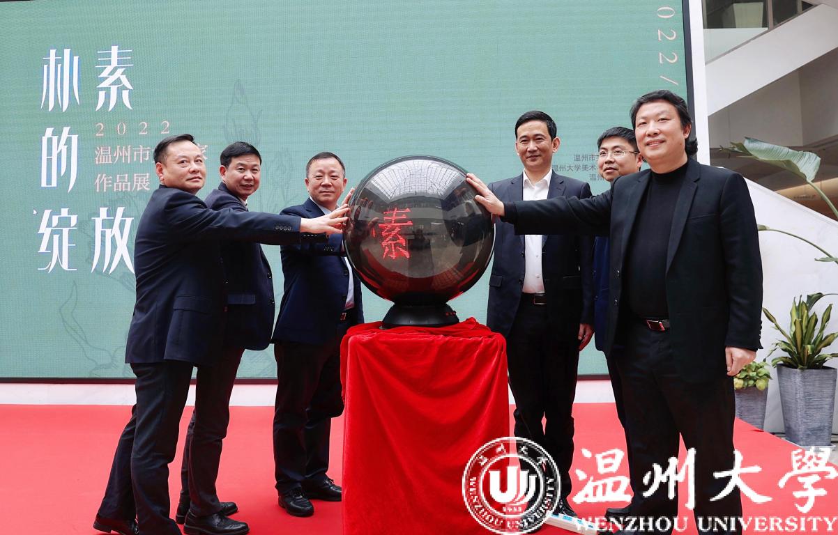3月5日下午,在温州市文化馆现场,香蕉视频 党委书记谢树华,温州市委宣传部副部长曾伟,温州市文联党组书记周新波,香蕉视频 党委委员、宣传部长潘玉驹,温州市文广旅局党组成员、副局长柳升高先生,温州市文联党组成员,副主席谢子康共同按下“朴素的绽放”2022温州市女画家作品展启动球,为开幕式隆重揭幕!
