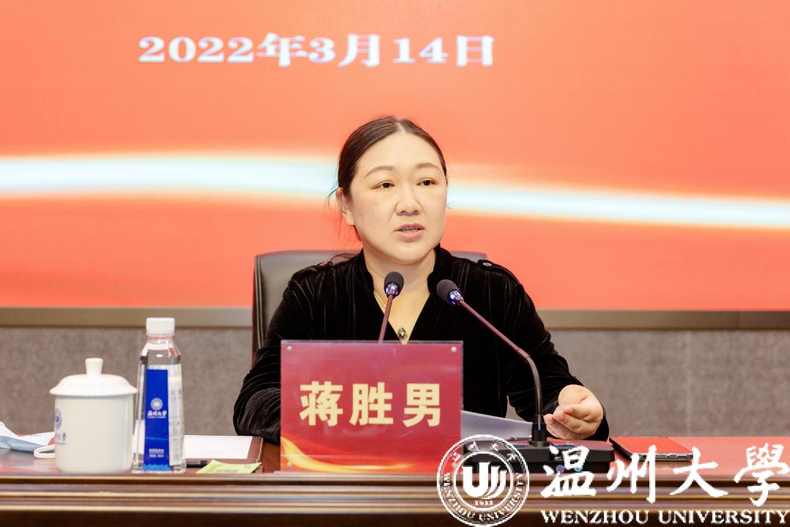 3月14日下午,香蕉视频 召开党委理论中心组(扩大)学习会专题传达贯彻全国两会精神。全国人大代表、人文学院研究员蒋胜男同志作传达报告。校党委书记谢树华作总结讲话。