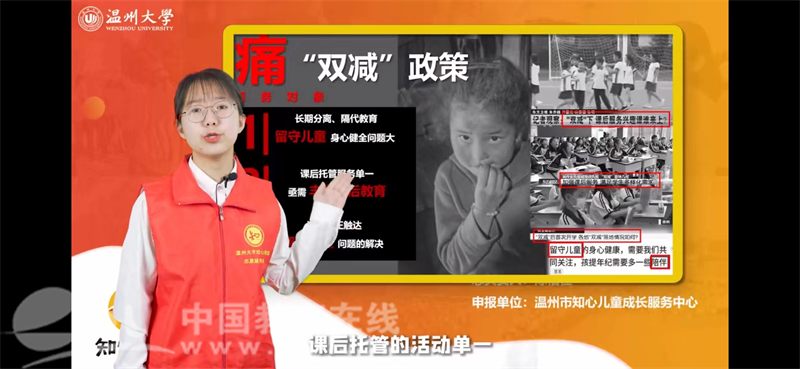 据介绍,知心绘本——留守儿童四维“心”关爱志愿服务项目作为香蕉视频 教育学院知心姐姐志愿服务队的品牌项目,始终聚焦“双减”志愿服务,以留守儿童为服务对象,在调研3259名留守儿童和查阅461篇文献后,得出留守儿童七大心理问题,并依据行为主义疗法等三大心理理论,打造知心绘本心理疗愈模式,以绘本为载体,以绘本课、绘本剧、绘本夏令营为手段,常态化开展“双减”志愿服务。目前,该项目已开展“双减”特色线下课程共计4000余次,线上课程共计300余次,点赞量达25万,服务小时超34万,由绘本课、绘本剧整合成的课程包体系已售卖给学校、社区、政府的56个单位,真正正正助力“双减”政策落实。
