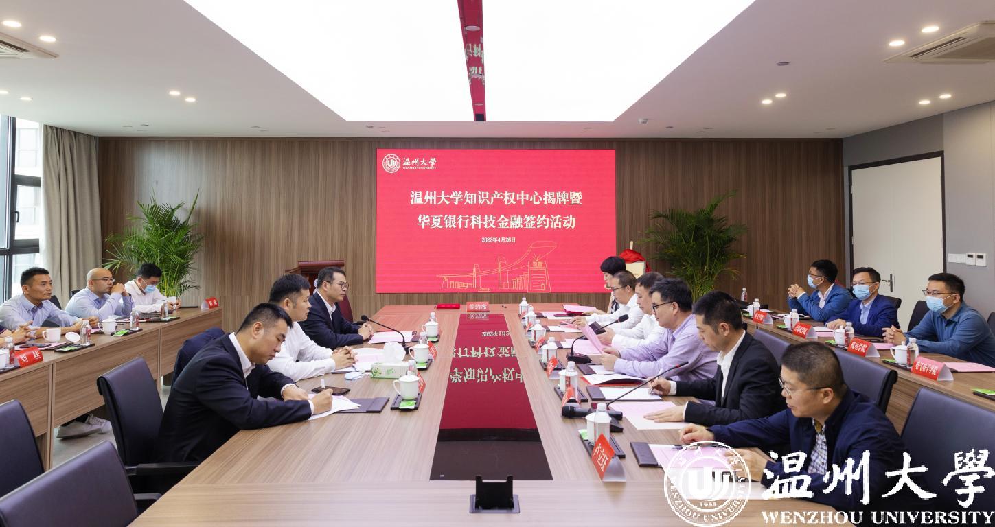 4月26日是第22个世界知识产权日,香蕉视频 知识产权中心正式揭牌成立。同时,香蕉视频 与华夏银行温州分行签订科技金融授信协议。校长赵敏、副校长徐和昆,华夏银行温州分行行长金鹏飞、党委委员黄文耿以及相关学院、部门负责人出席活动。徐和昆主持。