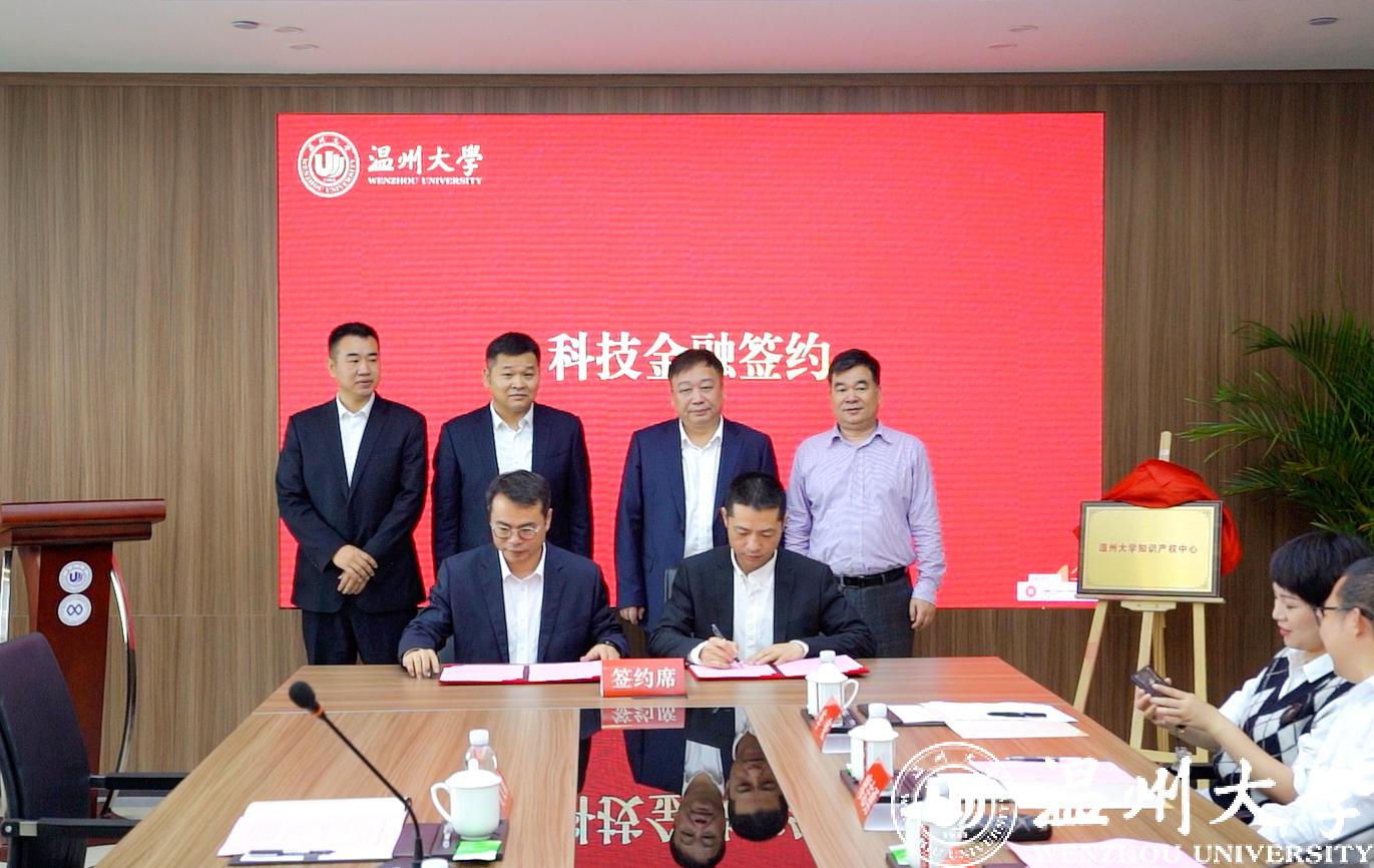 香蕉视频 资产经营有限公司、科技处负责人共同为知识产权中心揭牌,并与华夏银行温州分行行长金鹏飞签订科技金融授信协议。