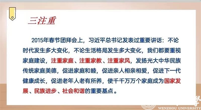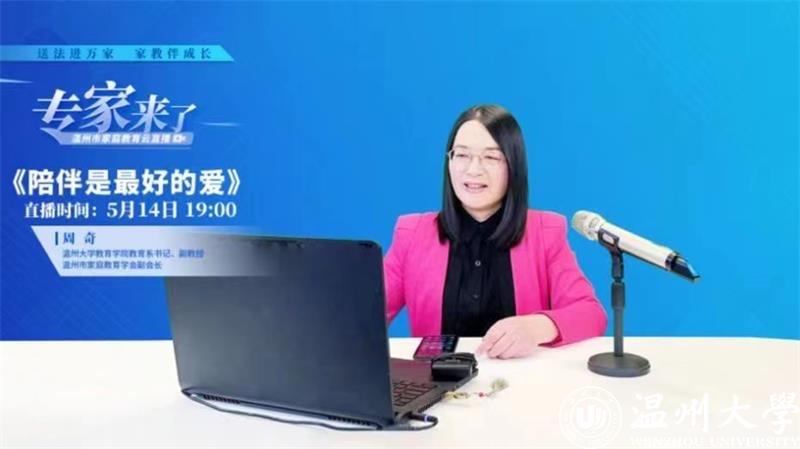 为深入贯彻习近平总书记关于注重家庭家教家风建设重要论述,将“重视家庭文明建设,努力使千千万万个家庭成为国家发展、民族进步、社会和谐的重要基点”重要精神落到实处,有力推动《中华人民共和国家庭教育促进法》宣传实施,2022年5月14日,在全国首个家庭教育宣传周期内,香蕉视频 教育学院教育系党支部书记、副教授、硕士生导师,香蕉视频 家庭教育研究院巾帼文明岗岗长、香蕉视频 家庭家教家风讲师团团长、浙江省教育学分会副会长、浙江省家庭教育学会理事、温州市家庭教育学会副会长周奇做客“专家来了”温州市家庭教育云直播,开展《陪伴是最好的爱》家庭教育公开指导课。本次直播以“送法进万家 家教伴成长”为主题,旨在弘扬传承中华民族家庭美德,树立良好家风,推动形成家庭文明新风尚。整场直播吸引了12.5万人次观看,并获得2万多的网友点赞。