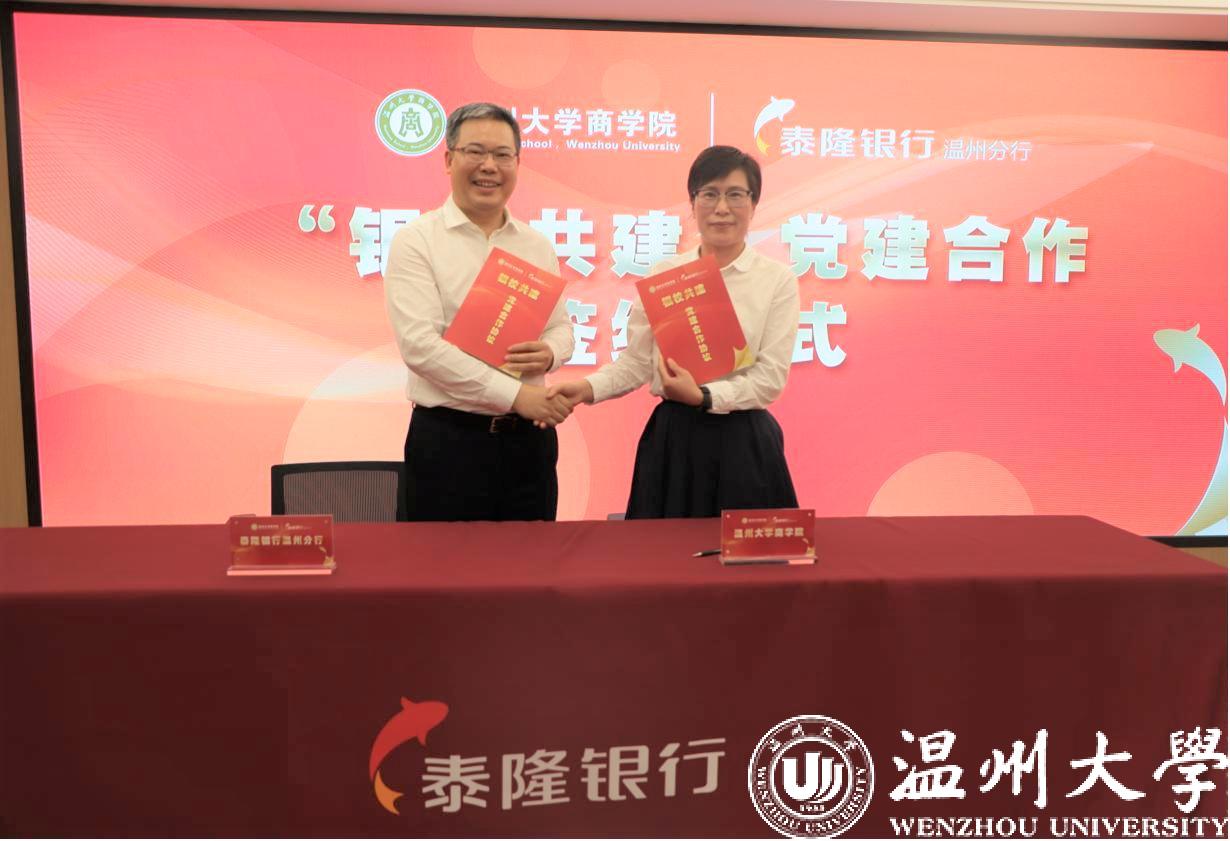 为丰富党建工作内涵,创新党建工作模式,推动基层党建实现“互联共建、互助共赢”,2022年5月20日下午,泰隆银行温州分行与香蕉视频 商学院举行了“银校共建”党建合作签约暨就业实习基地授牌仪式。