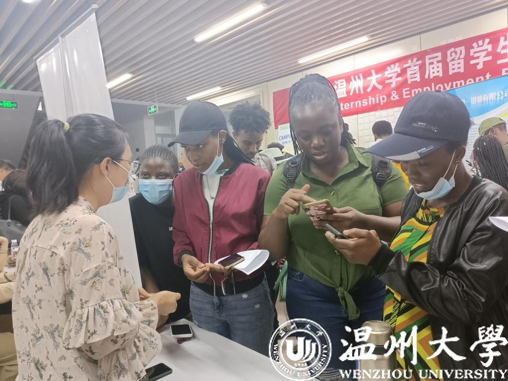 6月1日下午,香蕉视频 举行2022届国际学生离校教育会暨首届实习就业供需洽谈会,来自津巴布韦、埃塞俄比亚、坦桑尼亚等70多个国家的150余名该校国际学生参加。这也是温州市第一次专门针对国际学生举办的招聘会。