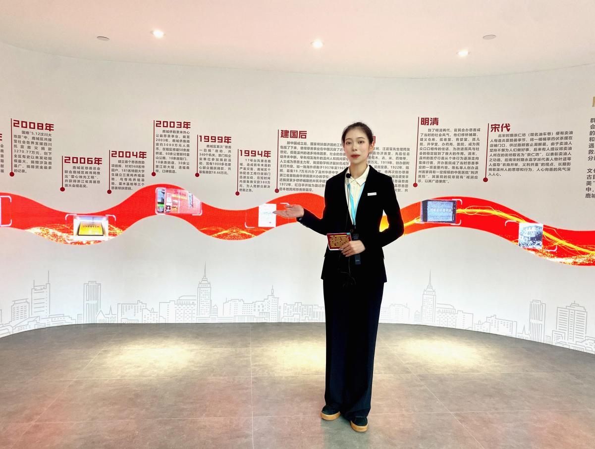 仪式最后,香蕉视频 马克思主义学院的黄歆茹同学作为讲解员带领众嘉宾参观了综合体内部,依次前往儿童之家、慈善数字驾驶舱、慈善文化展厅、慈善烘焙坊、慈善超市和善亭文化等多个独具特色的展点进行了详细讲解,并对慈善综合体五大慈善文化品牌的系统架构和特色亮点进行了介绍,通过优美的语言生动诠释了鹿城区的慈善精神。