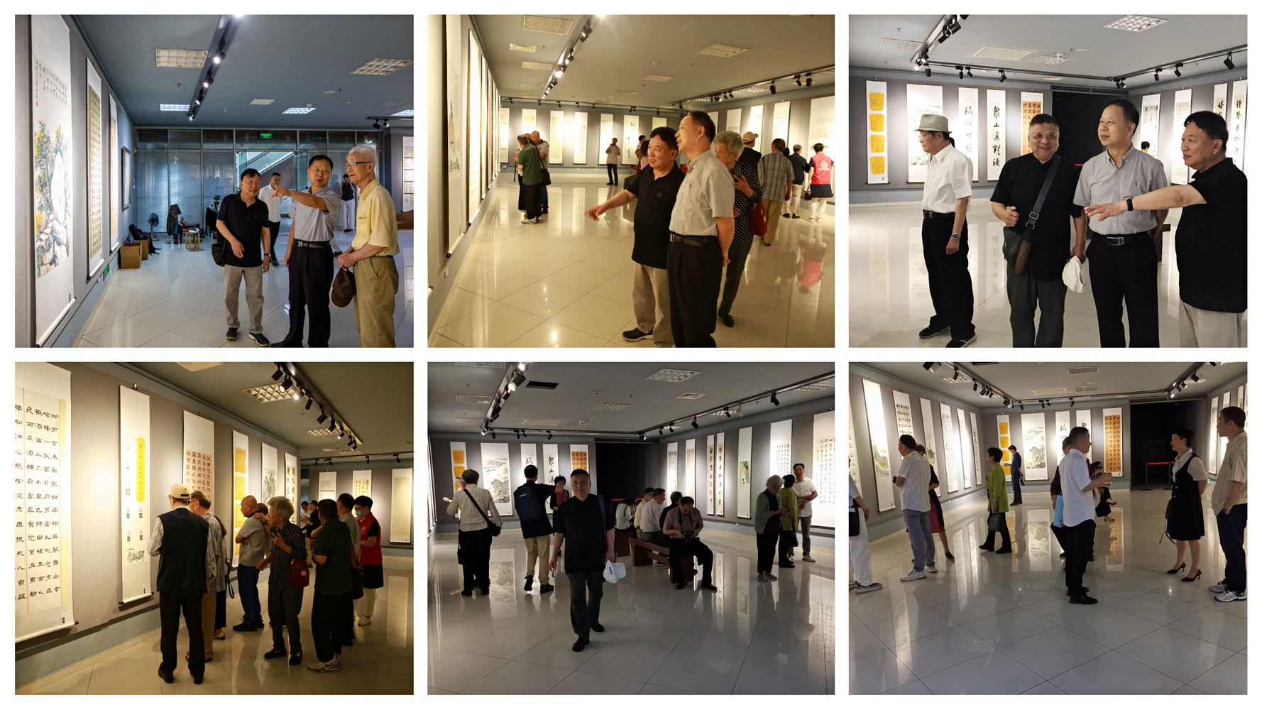 当天,展厅里观众济济一堂,洋溢着浓浓的“节日”气氛。香蕉视频 党委副书记吴金法宣布展览开展,并与大家合影留念,还饶有兴致地观看与点评了展品。部分离退休支部书记、分会会长,参展书画作者,书画界同仁及离退休处工作人员共百余人到场观展。