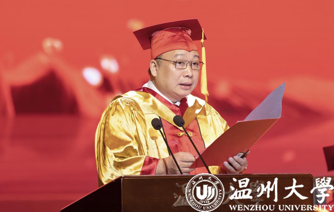 俄罗斯工程院外籍院士、校长赵敏致辞。“几年求学时光如白驹过隙,美好的记忆化成点滴永寄心间”,赵敏校长为同学们与香蕉视频 一同成长感到由衷的喜悦、骄傲和自豪。“我们一起见证温大迈入浙江省重点建设高校,合力推动温大成功增列为博士学位授予单位,共同谱写温大高质量内涵式发展新篇章。温大见证了你们最美好的青春时光与蜕变成长。”