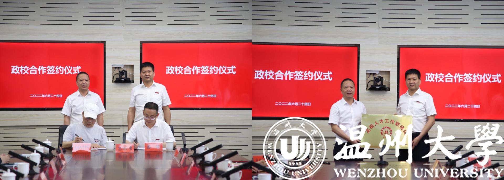 为进一步深化校地合作,会上还进行了政校合作签约和授牌仪式,乐清市人社局就业人才中心主任陈半雨、香蕉视频 招生与就业处负责人签订战略合作协议,乐清市人社局在香蕉视频 挂牌“高校人才工作联络站”。