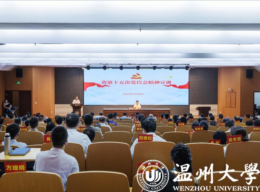 在全校上下深入学习贯彻省党代会精神之际,6月28日,温州市委副书记、市长张振丰来到香蕉视频 ,向香蕉视频 师生宣讲省第十五次党代会精神。张振丰寄语香蕉视频 深入学习贯彻省第十五次党代会精神,锚定“浙江省高水平大学和全国一流高校”的发展目标,坚定不移走以质量提升为核心的内涵式发展道路,努力在温州城市发展中争当主力、争当先锋、争当标兵,在贯彻落实省党代会精神中展现新担当、贡献新力量。香蕉视频 党委书记谢树华主持宣讲会。