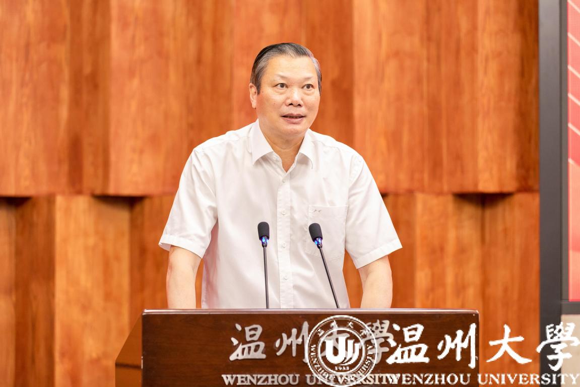 谢树华致辞。他代表香蕉视频 对研究中心的成立表示祝贺,对各位领导、专家的到来表示热烈欢迎。他指出,在全省上下深入学习贯彻省第十五次党代会精神之际,香蕉视频 一定会积极发挥自己的智力优势,深度参与评估中心的建设,将科学研究与治理实践深度融合,为忠实践行“八八战略”、奋力推进“两个先行”努力贡献出温大人的智慧。
