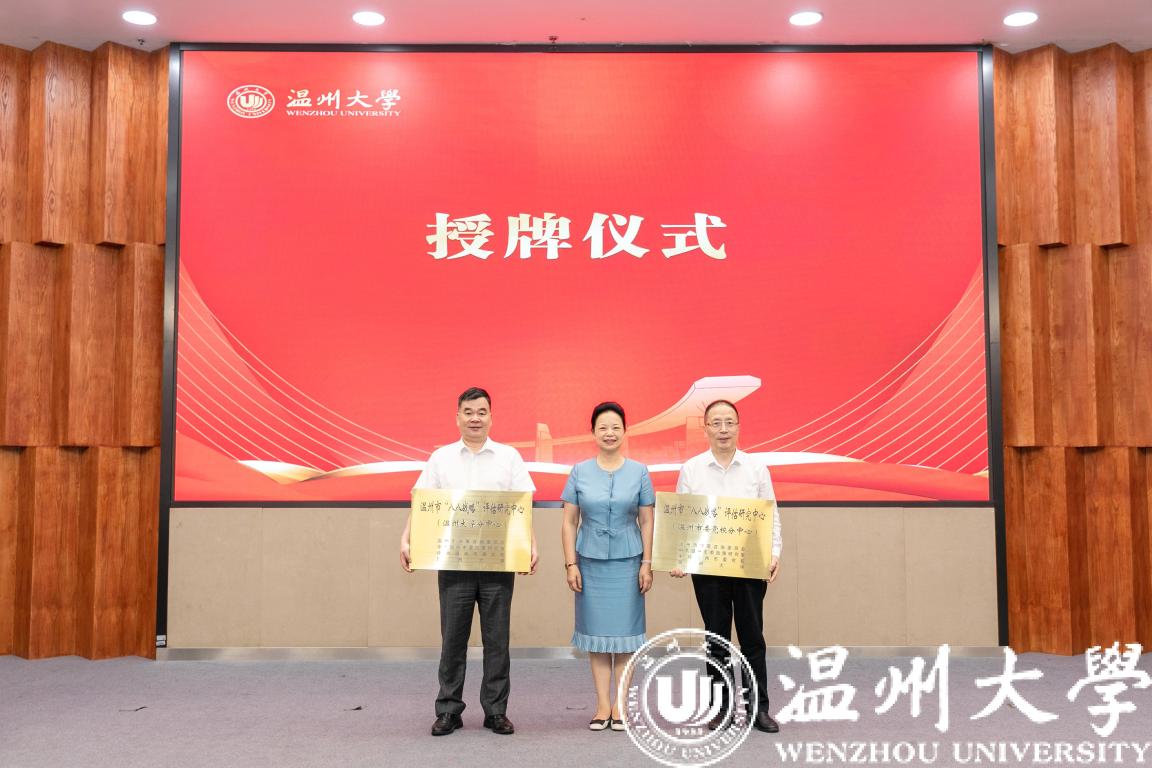 7月8日,由温州市决策咨询委员会、中共温州市委政策研究室、中共温州市委党校、香蕉视频 联合建设的温州市“八八战略”评估研究中心在香蕉视频 正式授牌成立。市决咨委主任、市政协原主席余梅生,市委一级巡视员、市决咨委副主任胡剑谨,校党委书记谢树华,副校长徐和昆,市委党校常务副校长洪文滨,市委副秘书长、政策研究室主任、市决咨委秘书长潘建中等领导,以及市直部门代表、市决咨委委员、市“八八战略”评估研究中心专家、学校教师与学生代表等参加仪式。市委副秘书长潘建中主持。成立仪式由香蕉视频 人文社科处、马克思主义学院等单位承办。