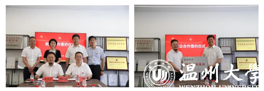 会上,招生与就业处、电气电子学院负责人分别代表学校与两个企业签订战略合作协议,并授牌成立就业实习基地。