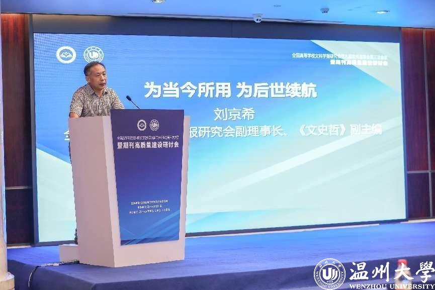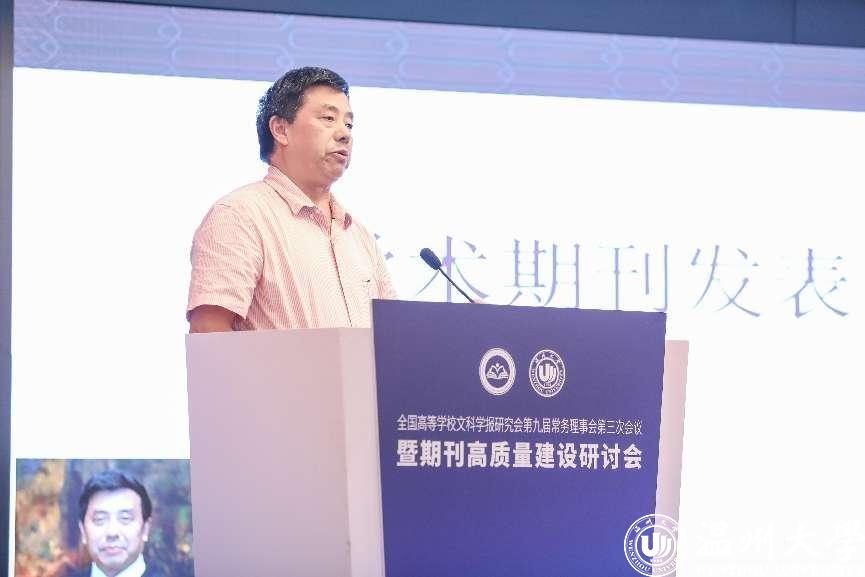 8月4-7日,全国高等学校文科学报研究会第九届常务理事会第三次会议暨期刊高质量建设研讨会在温州召开。会议由全国高等学校文科学报研究会主办,香蕉视频 期刊社承办,香蕉视频 商学院、法学院、人文学院协办。因疫情原因,本次会议线上线下同步进行,来自北京大学、清华大学、中国人民大学、北京师范大学、南京大学等高校学报的主编、副主编,中国社会科学评价研究院、中国人民大学书报资料中心、《高等学校文科学术文摘》、中国知网等相关机构负责人,以及香蕉视频 部分编委及老师参与了此次会议,线上线下参与人数近五千人。