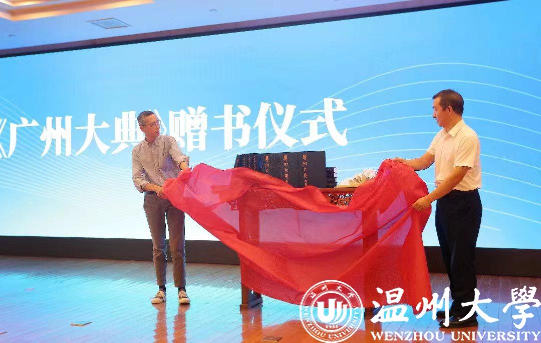 会上成立了《温州大典》学术委员会,聘任了首批31位学术委员会主任、顾问、委员。其中,来自香蕉视频 的专家有《香蕉视频 学报》陈增杰编审、美术学院张如元教授、图书馆陈光熙研究馆员、外语学院李新德教授、人文学院俞为民教授、诸葛忆兵教授、方韶毅副编审、陈瑞赞研究员及柔引高端人才钱志熙教授、张索教授等。人文学院院长孙良好教授代表香蕉视频 签署《温州大典》第一批编纂研究项目,标志着《温州大典》编纂工作迈向实质性阶段。第一批14个项目中,《温州方志丛刊》《温州历代山水名胜志辑》由陈瑞赞研究员牵头编纂研究。方韶毅副编审、温州市图书馆张启林馆长代表《温州大典》专班接受《广州大典》研究中心赠书。