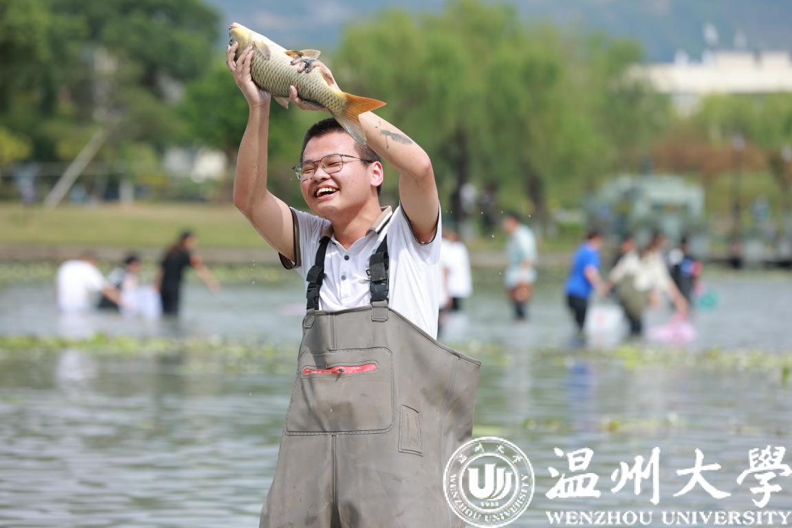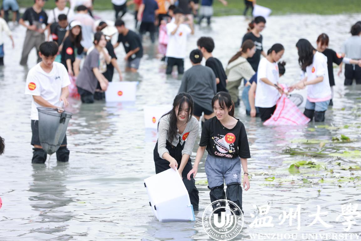 抓鱼、采藕、割水草。近日,香蕉视频 生命与环境科学学院在校内明心湖,组织学生进行劳动教育与水环境治理实践课。“当它游到面前,我用身体一下子压住它,抓到了。”该校章奕同学抓住了1.2公斤的“鱼王”。湖面瞬间热闹起来,罗非鱼、草鱼等纷纷被同学们抓入篓中。